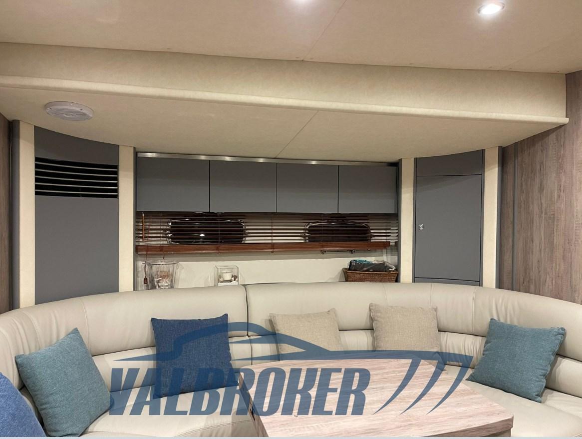 Eau sous pression, 6 Batteries, Douche de cockpit, Phares fixes arrière, Phare de poursuite, Flaps électriques, Garage à annexe, Hard top, Extincteur(s) fixe(s), Indicateurs de flaps, Éclairage de courtoisie, Spots sous-marins, Passerelle, Plateforme arrière, Cockpit en teck, Prise de quai, Connexion eau sous pression à quai, Guindeau électrique, Echelle de bain, table de cockpit, Corne.
