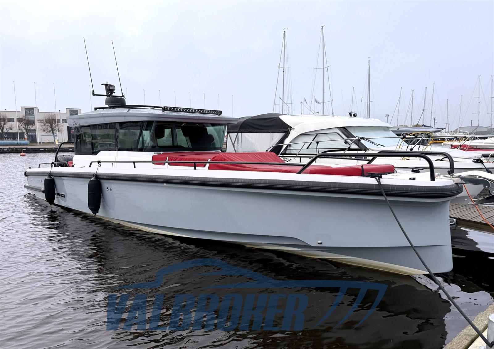 Axopar 37 Cross Cabin, deux cabines doubles et une salle de bain. 2x350 CV Mercury !! Propulseur d’étrave, chauffage Webasto. Entreposage intérieur en hiver.
