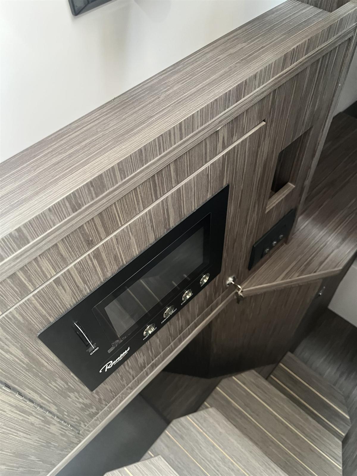 Réfrigérateur Est, radio stéréo HERTZ 4 + 2 tours, douche, LED Est, magnétoscope FLY TOP avec structure en acier inoxydable avec auvent et poteaux en carbone, SEA Deck sur le pont, tubulaires bicolores. Table arrière, Plates-formes allongées, Sièges rabattables dans le cockpit,