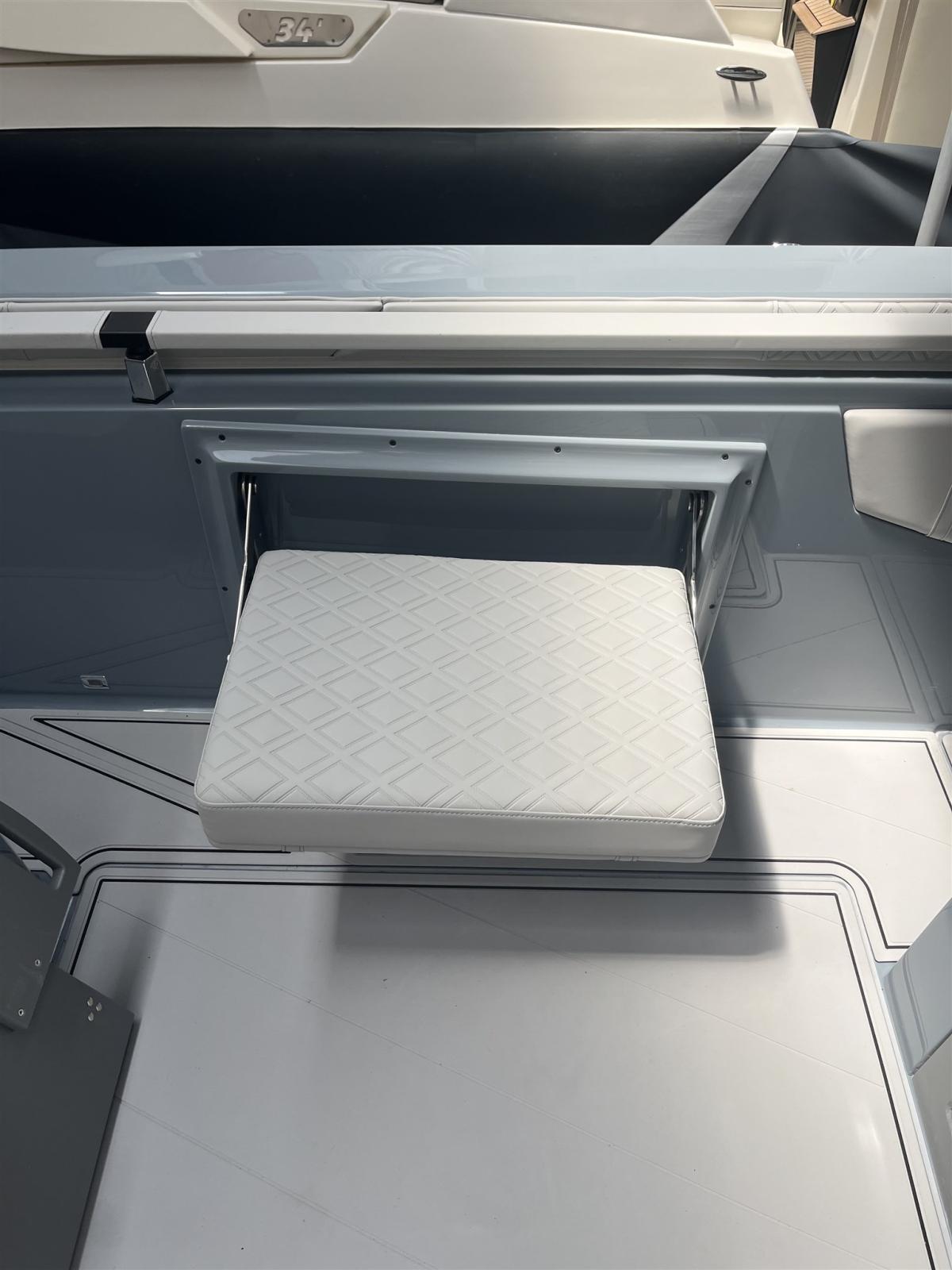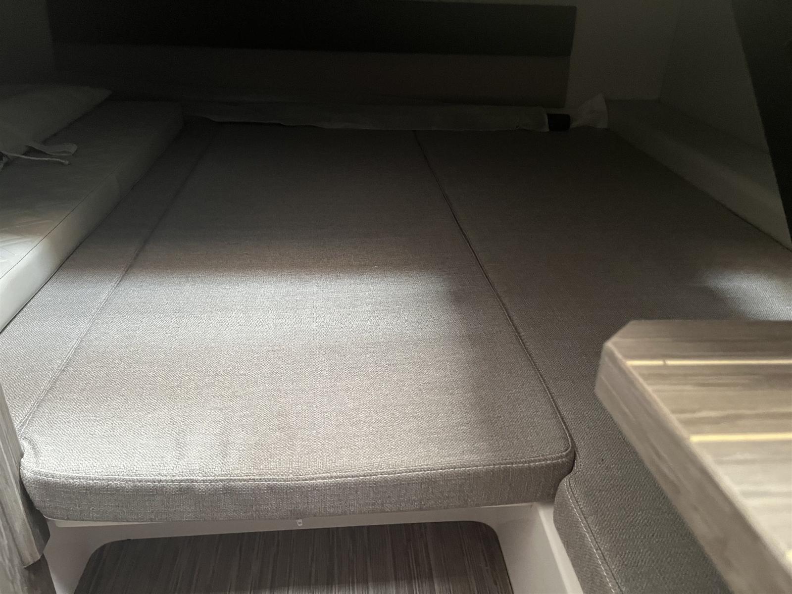 Eau sous pression, Plateforme arrière, Pont en teck (sintetico), Rollbar, Guindeau électrique, Echelle de bain, table de cockpit.