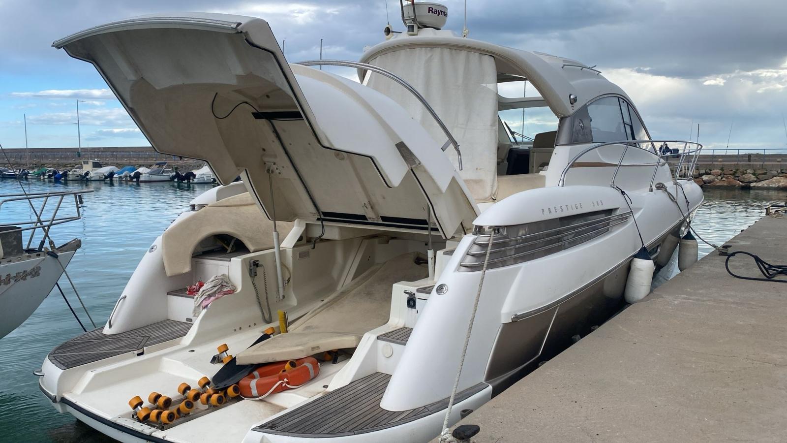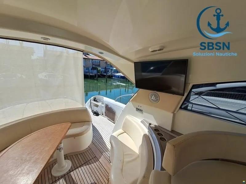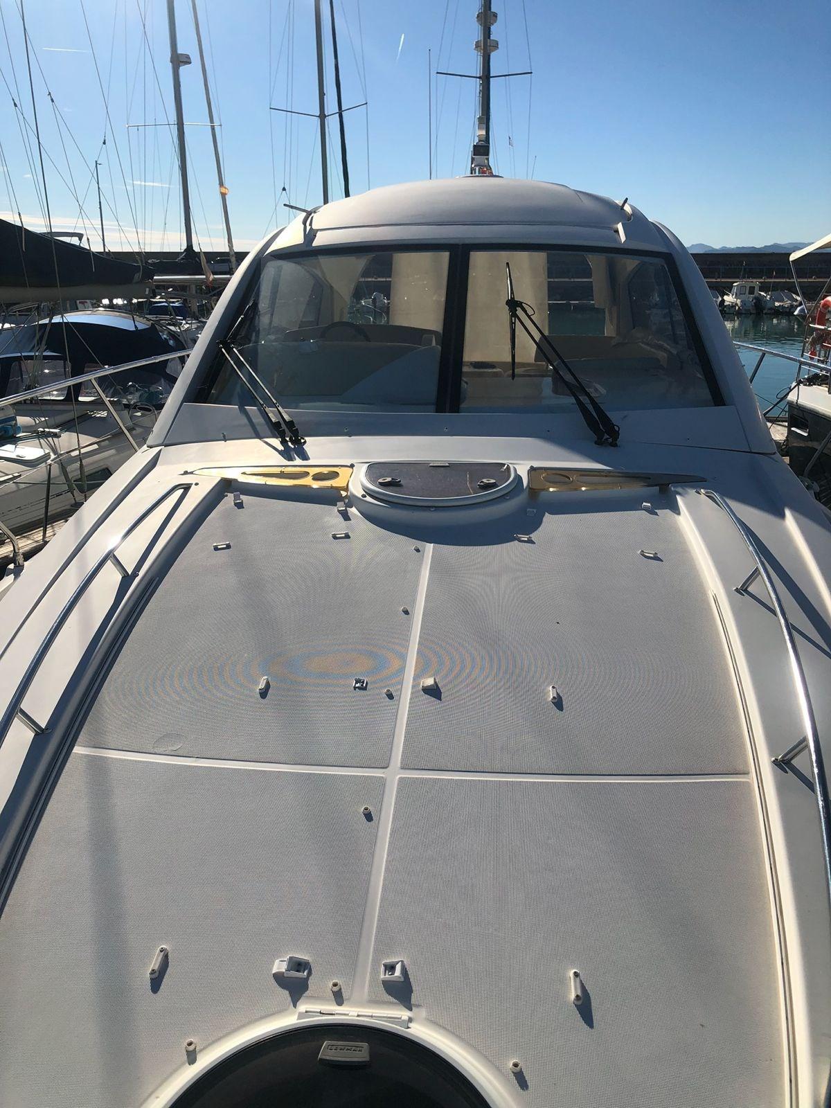 Alarme moteur, Alarme de pompe de cale, Alternateur, Ouverture du compartiment moteur électrique, Eau sous pression, Couleur spéciale, Douche de cockpit, Phare de poursuite, Flaps hydrauliques, Garage à annexe, Hard top, Extincteur(s) fixe(s), Indicateurs de flaps, Lavage de chaine, Lavabo dans le cockpit, Éclairage de courtoisie, Spots sous-marins, Défenses, Passerelle (Idraulica Besenzoni), Plateforme arrière, Pompe de cale automatique, Pompe de cale manuelle, Pompe à Eau de Mer, Cockpit en teck, Prise de quai, Connexion eau sous pression à quai, Rollbar, Guindeau électrique, Echelle de bain, Système de filtration des eaux usées, table de cockpit, Table pliante de salon, Annexe, Corne, Winch, Winch électrique arrière.