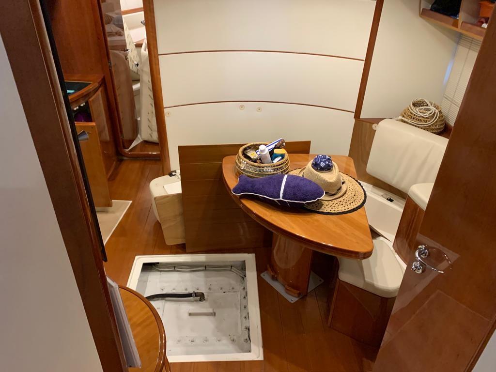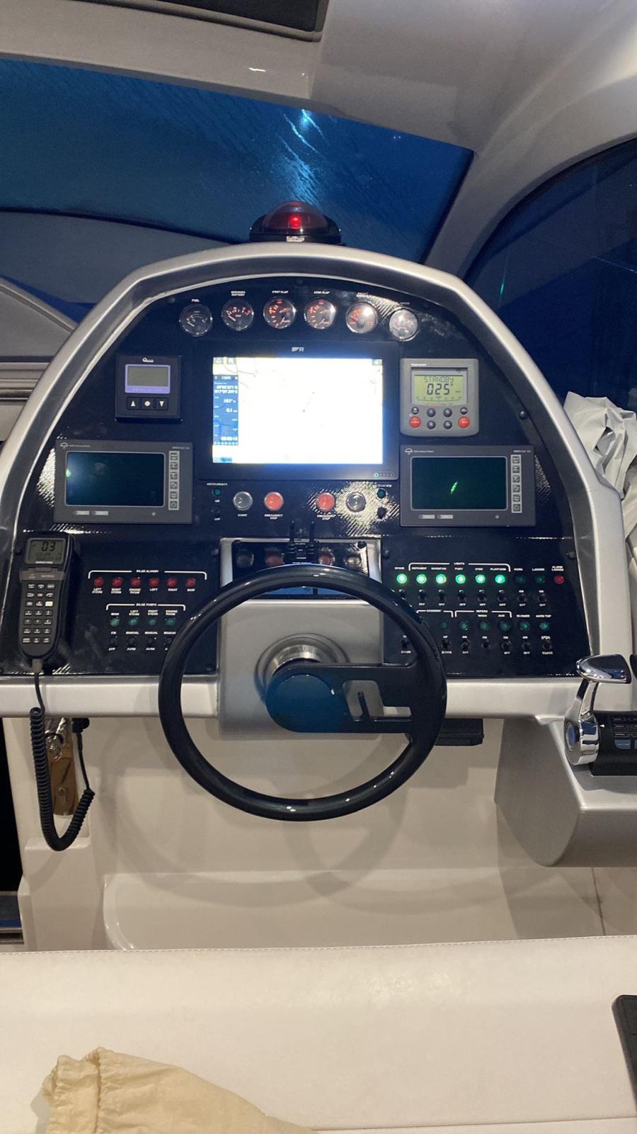 Alarme moteur, Alarme de pompe de cale, Eau sous pression, Douche de cockpit, Flaps hydrauliques, Hard top, Extincteur(s) fixe(s), Lavage de chaine, Lavabo dans le cockpit, Éclairage de courtoisie, Spots sous-marins, Passerelle, Plateforme arrière, Pompe de cale automatique, Pompe de cale manuelle, Cockpit en teck, Prise de quai, Guindeau électrique, Echelle de bain, table de cockpit, Annexe, Corne.