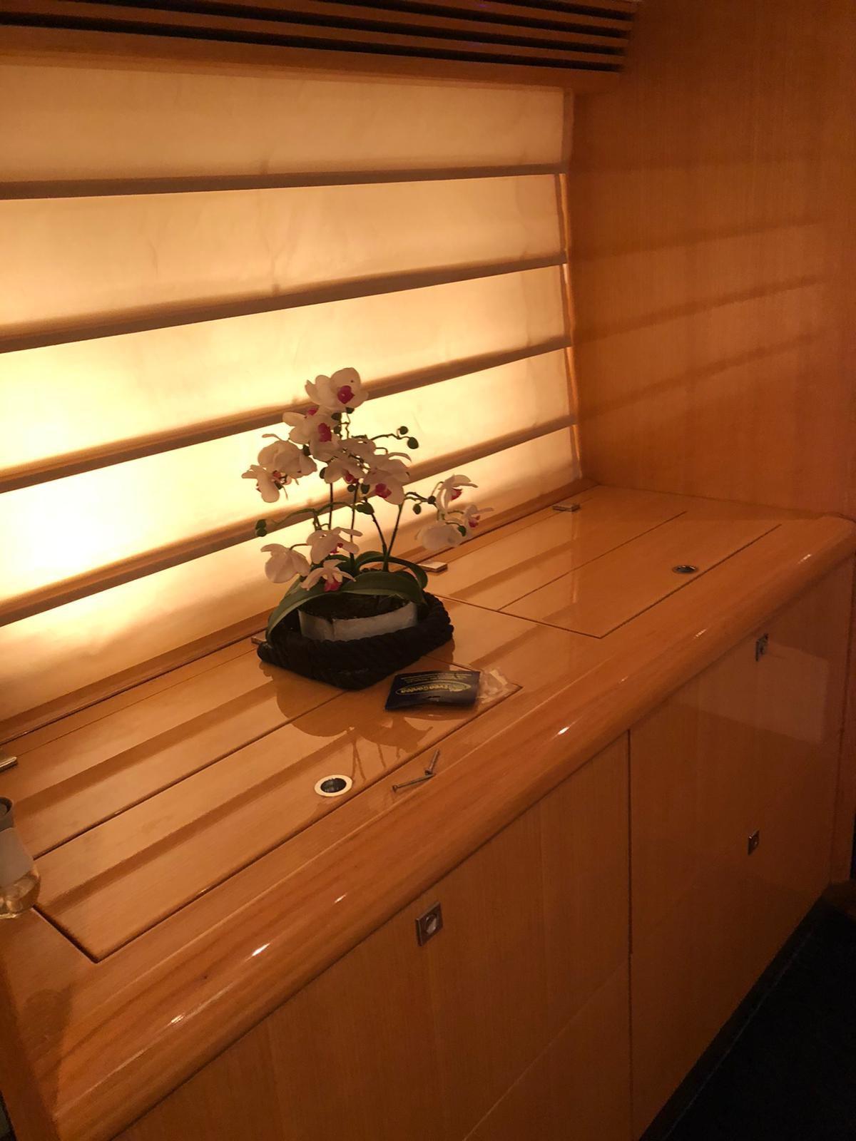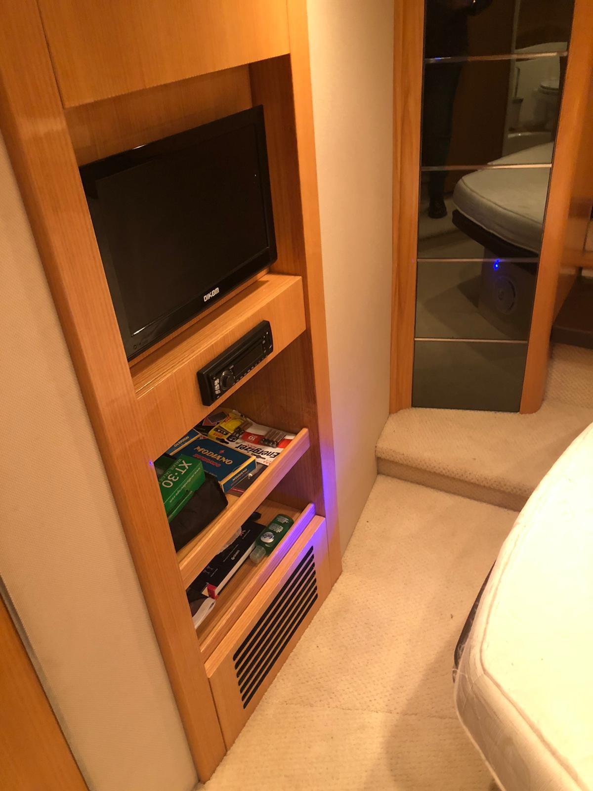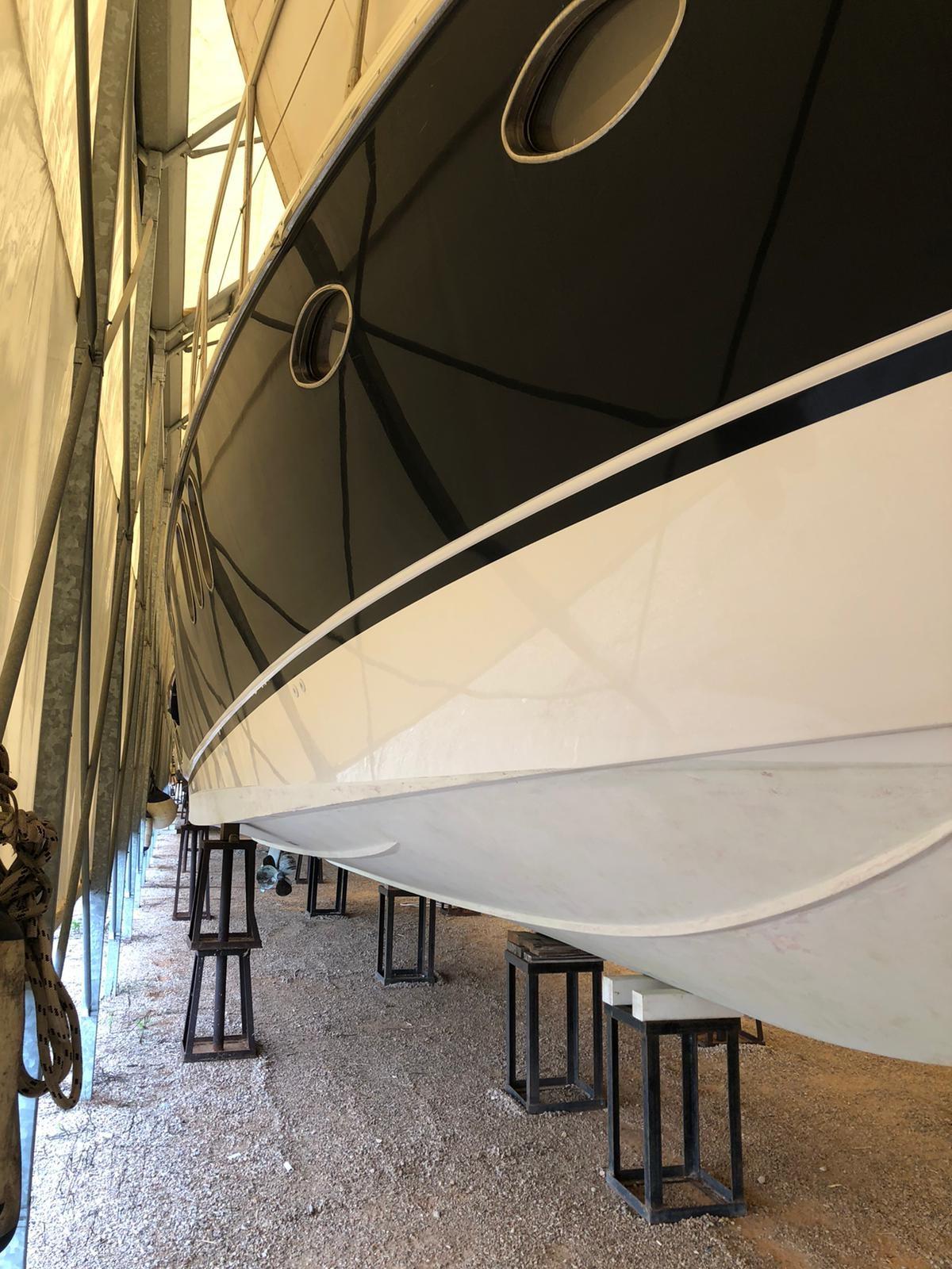Alarme moteur, Alarme de pompe de cale, Eau sous pression, Douche de cockpit, Flaps hydrauliques, Garage à annexe, Hard top, Extincteur(s) fixe(s), Passerelle, Plateforme arrière, Pompe de cale automatique, Pompe de cale manuelle, Cockpit en teck, Prise de quai, Onduleur, Guindeau électrique, Echelle de bain, table de cockpit, Annexe, Corne, Winch électrique avant.