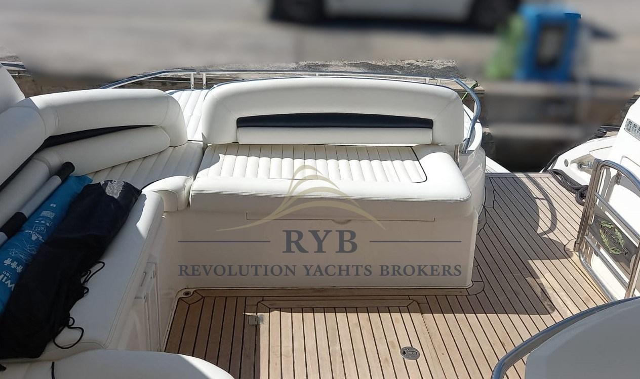 Eau sous pression, Couleur spéciale, Douche de cockpit, Flaps hydrauliques, Hard top, Extincteur(s) fixe(s), Indicateurs de flaps, Lavabo dans le cockpit, Éclairage de courtoisie, Passerelle (A SCOMPARSA), Plateforme arrière (idraulica - TENDERLIFT), Pompe de cale automatique, Porte latérale, Cockpit en teck, Prise de quai, Guindeau électrique, Echelle de bain.