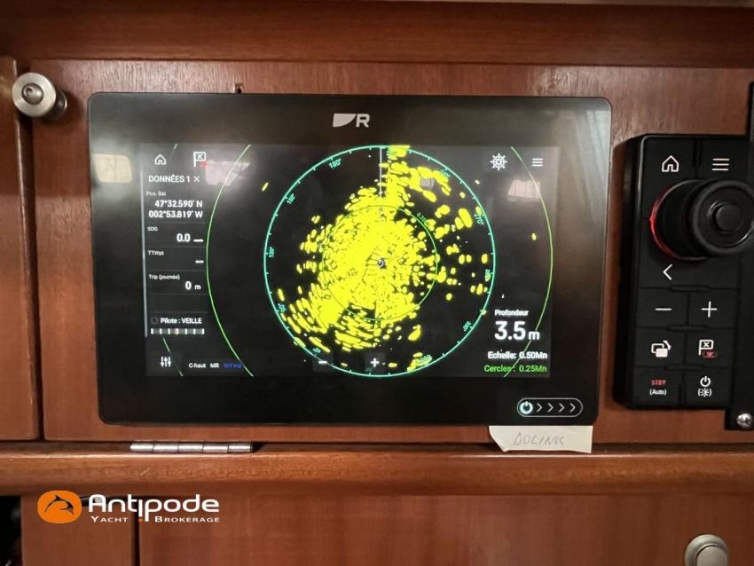 ETAP 34 S, 2000, Volvo 2030 MD, 29 cv (3746 h), Version d'aménagement intérieur 1 cabine avant, 1 cabine arrière, Charriots de génois réglables depuis le cockpit, Capote de roof - 2020, Guindeau électrique + housse de protection- 1000 W, Gréement dormant câble monotoron - 2015, Etai - 2025, Grand-voile full batten 2 ris - North Sails 2025 - North Sails Norlam 2025, Rail de guindant de grand voile + chariots de lattes - Facnor 2017, Lazy-bag de grand voile - 2020, Enrouleur de génois avec tambour sur le pont - Furlex 200, Génois sur enrouleur - North Sails Norlam 2023, Etai largable avec système de tension, Trinquette pour étai largable - Sextant, Tangon aluminium + tangon télescopique, Spinnaker triradial classique - North Sails 2013, Spinnaker asymétrique - Elvstrom, Pilote automatique in board Raymarine - SPX 10 Evolution 2022, Centrale de navigation (loch, speedo, sondeur, vent) - Raymarine I 70 2024, GPS / lecteur de carte à la table à carte - Raymarine Axiom 9 + 2021, GPS / lecteur de carte dans le cockpit - Raymarine Axiom 9 2021, Cartographie électronique, Radar avec radôme sur support de mât - Raymarine 2015 (fonction overlay sur traceur), Transpondeur AIS (émetteur récepteur) - Raymarine Class B 2014, VHF + combiné cockpit - HX 870 E 2017, Haut-parleur VHF cockpit, Navtex - Furuno NX 300, Radio-CD + HP, Balise de détresse - Epirb 2022, Unité réfrigérante 12 V ouverture par le dessus - 2023, Chauffe-eau 220 V + échangeur, Eau chaude et froide sous pression, Gazinière 2 feux + four - 2022, Prise de quai 220 V + chargeur de batteries, Batterie moteur - 74 amp/h 2021, Batteries service - Lithium 2 X 90 amp/h 2017, Prises intérieures 220 V, Contrôleur / gestionnaire de batteries - Victron, Chauffage EBERSPACER - 2014, Vannes et passes coques remplacés 2021 et 2024, Panneaux solaires - 130 W 2019, Radeau de survie 4 p. révisé 2024 - 4W 4, Mouillage principal ancre DELTA 16 kg + chaine 60 m + cablot 30 m, Annexe - Zodiac Aero 230, Moteur hors-bord - Honda 2 cv / hp, Echangeur moteur remplacement et entretien 2022, joint saildrive 2017. Visible Bretagne. Pour plus d'informations ou pour fixer un rendez-vous de visite, contact : Jérôme Le Joubioux 06 07 45 71 73 - [email protected]