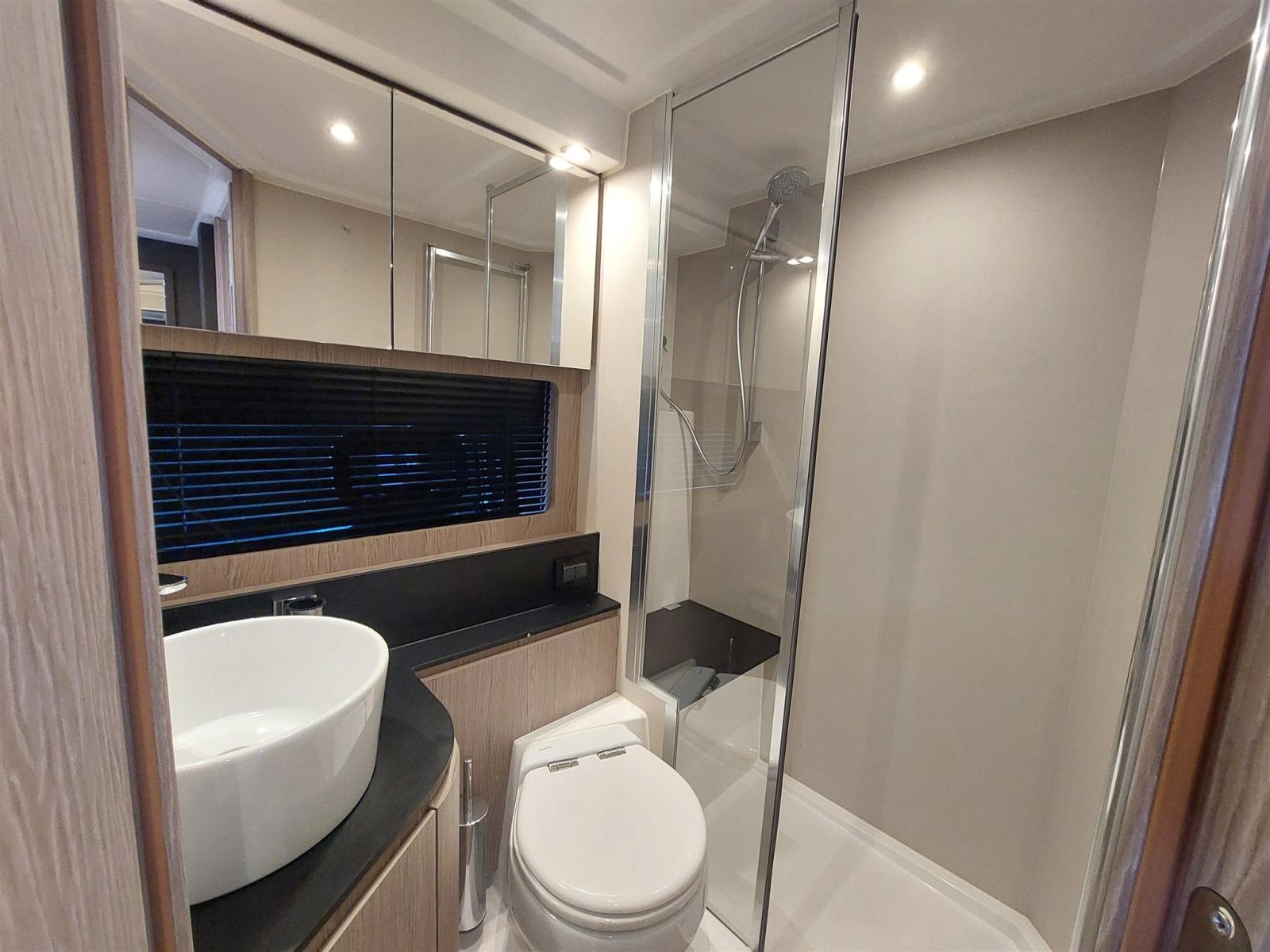 2 Alarme moteur, Alarme de pompe de cale, Alternateur, Eau sous pression, Câble d’alimentation à quai, Filères, Douche de cockpit, Phare de poursuite, Fixation de l’ancre, 2 Flaps électriques, Hard top (elettrico), Extincteur(s) fixe(s), 2 Indicateurs de flaps, Lavabo dans le cockpit, Éclairage de courtoisie, 6 Défenses, Passerelle (Idraulica a scomparsa Besenzoni), Plateforme arrière (Idraulica abbattibile), 4 Pompe de cale automatique, Porte latérale, Prise de quai, Onduleur, Guindeau électrique, Echelle de bain, table de cockpit, Table pliante de salon, Corne, Winch électrique avant.