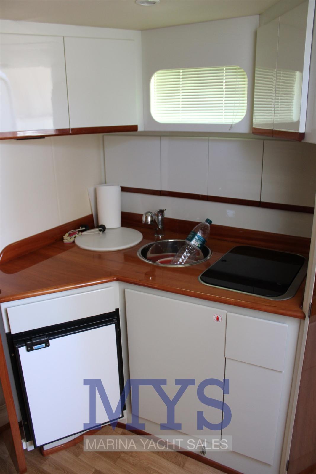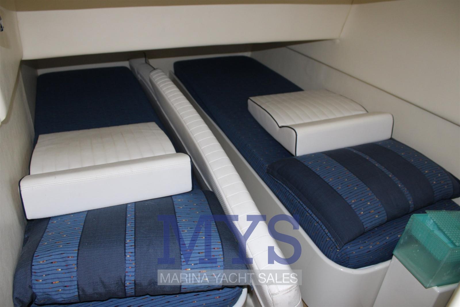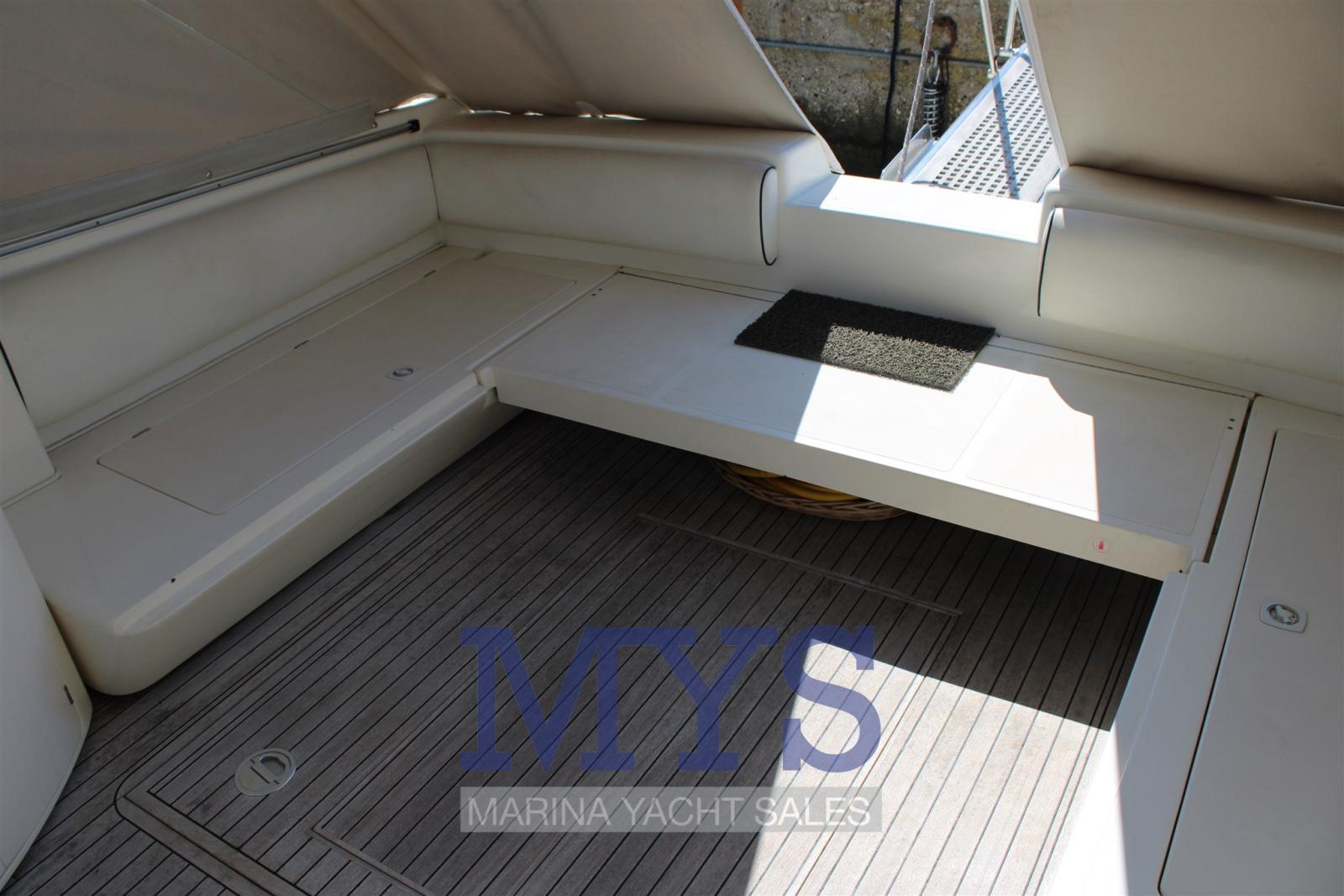 Alarme moteur, Ouverture du compartiment moteur électrique, Eau sous pression, Douche de cockpit, Flaps hydrauliques, Extincteur(s) fixe(s), Indicateurs de flaps, Lavabo dans le cockpit, Éclairage de courtoisie, Passerelle, Plateforme arrière, Pompe de cale automatique, Cockpit en teck, Prise de quai, Rollbar, Guindeau électrique, Echelle de bain, table de cockpit (A SCOMPARSA), Table pliante de salon, Corne.