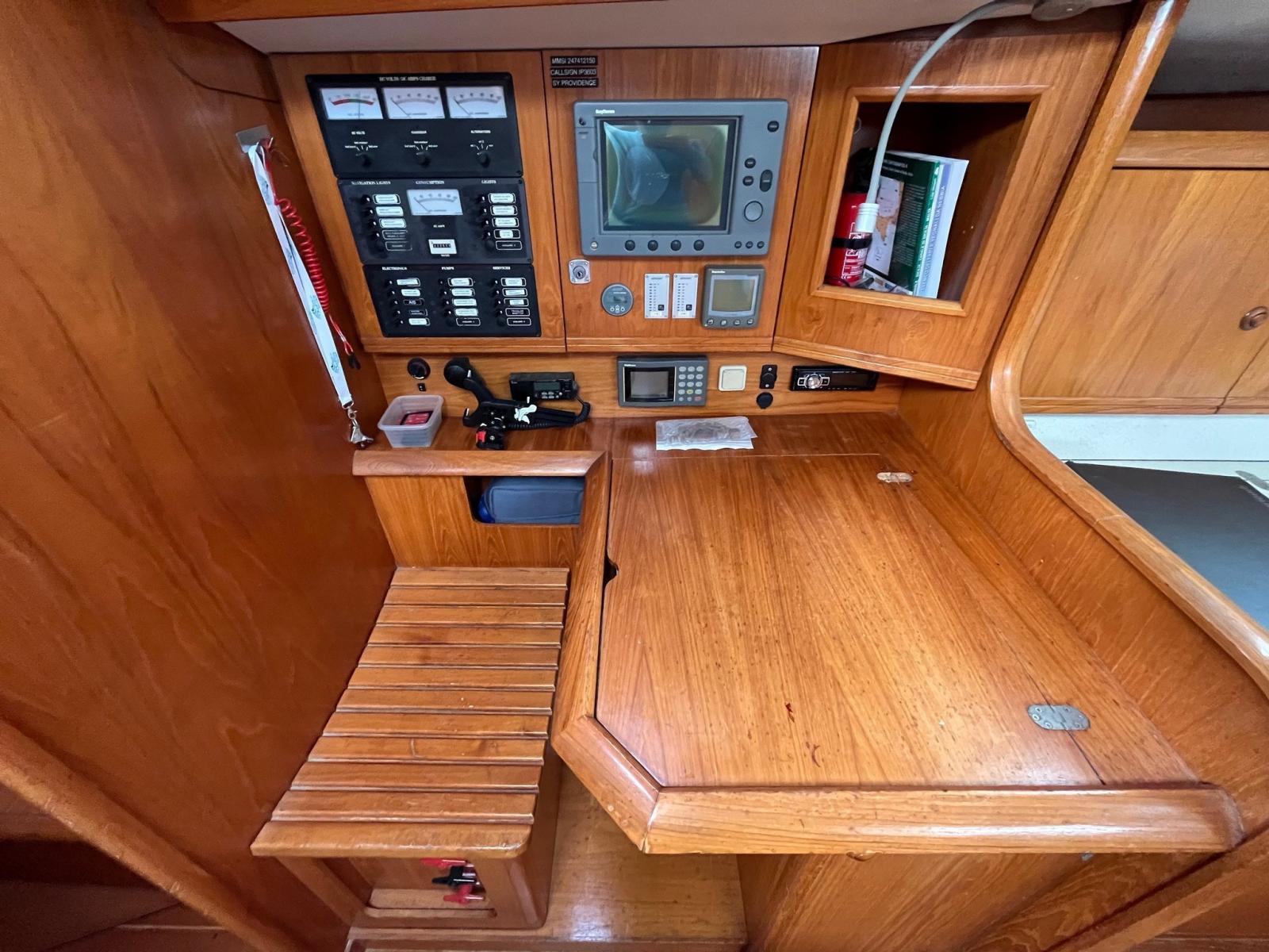 AIS (2022 AIS (HA102, CSTDMA) Sender+Receiver incl. Separate AIS Antenna (Scout KS-30)), Compas (PLASTIMO), Ordinateur fixe de bord (MINIPLEX), Compteur de chaîne (Kettenzählwerk Iris 600017, Remote control anchor windless from cockpit), Loch (RAYMARINE), Moniteur (RAYMARINE), Pilote automatique (Raymarine SPX10, SmartPilot st6001, Linear Drive Type1), Radio VHF (ICOM), Anémomètre/Girouette (RAYMARINE).