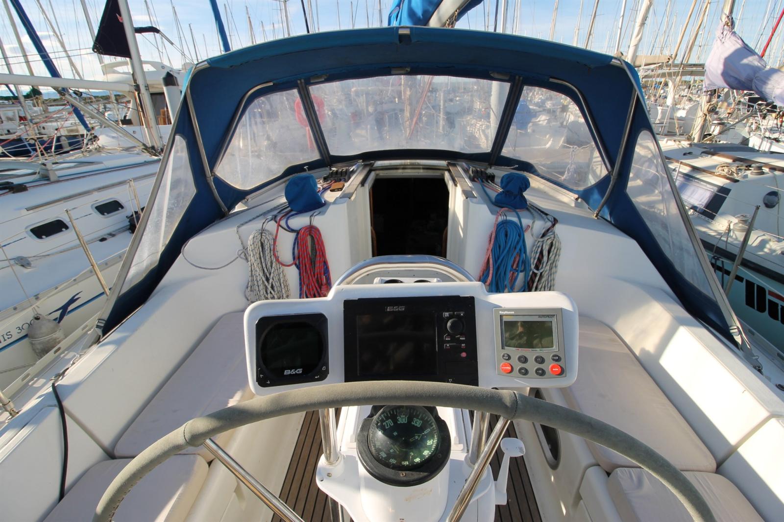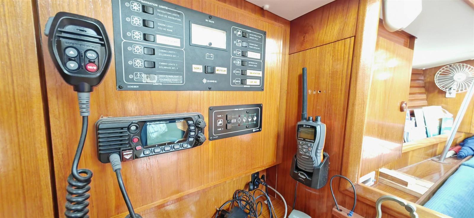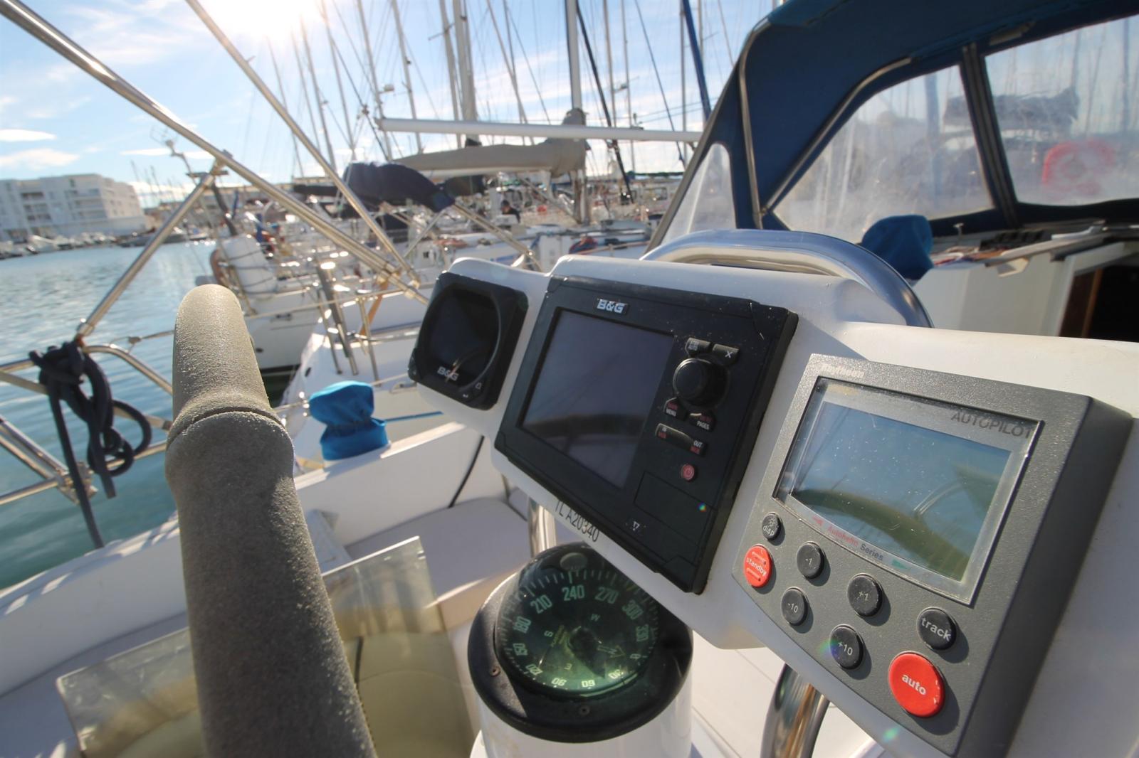 AIS (Emetteur/Récepteur), DSC VHF (STANDARD HORIZON GX1400GPS de 2023), Pilote automatique (ST5000+ Autohelm TYPE 1 (connection a girouette et lecteur carte en NMEA0183 par connection au Miniplex. Modes girouette et waypoint), Lecteur de cartes (B&G ZEUS Touch 7 pouces avec cartographie de 2023), Radio VHF (COBRA MARINE HH350), Sondeur (B&G TRITON 2), Anémomètre/Girouette (Girouette B&G 508).