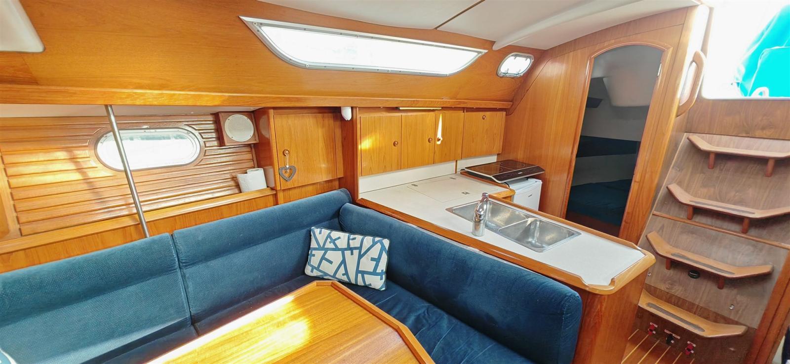 La société PHILIPPE PLAISANCE 100 % Voiliers a le plaisir de vous proposer un SUN ODYSSEY 36.2 en version deux cabines et grand tirant d’eau (1,80 m). Solide, marin et particulièrement volumineux pour sa catégorie, ce voilier offre dans sa configuration deux cabines un vaste couchage arrière ainsi qu’une grande salle de bain. Cette occasion bénéficie de la grosse motorisation de 40 ch, d’une électronique récente, d’un AIS, de 200 W de panneaux solaires, d’une sellerie de cockpit sur mesure, de housses de winch, table et console, d’une cuve à eaux noires ainsi que d’un lecteur de carte B&G ZEUS centralisant l’ensemble des informations de navigation. L’entretien moteur est à jour. Place de port et mise en main possibles.