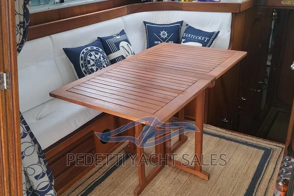 Menorquin 120 en très bon état, bois extérieur repeint, cockpit et plateforme de bain en nouveau flexiteak, électronique avec radar avec traceur séparé et GPS/plotteur Garmin 12", VHF, ECO, fermeture hivernale avec fenêtres et couvre-couvre-bande, système photovoltaïque 900 watts, réfrigérateur, congélateur, toilettes électriques, stéréo avec haut-parleurs internes et externes, douche extérieure, tissus intérieurs renouvelés, moteurs Yanmar 240 ch toujours maintenus avec 2 200 heures de moteur, système de chauffage Webasto, TVA payée.