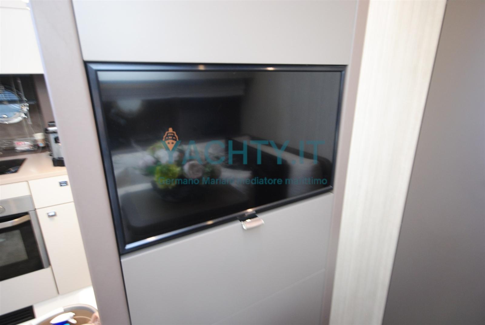 2 cabines et 2 salles de bains, bien équipées avec climatisation, toit rigide à ouverture électrique, teck dans le cockpit, garage pour annexe. Grand bain de soleil arrière, manœuvre par joystick. Excellente habitabilité, idéale pour les croisières en famille ou entre amis.