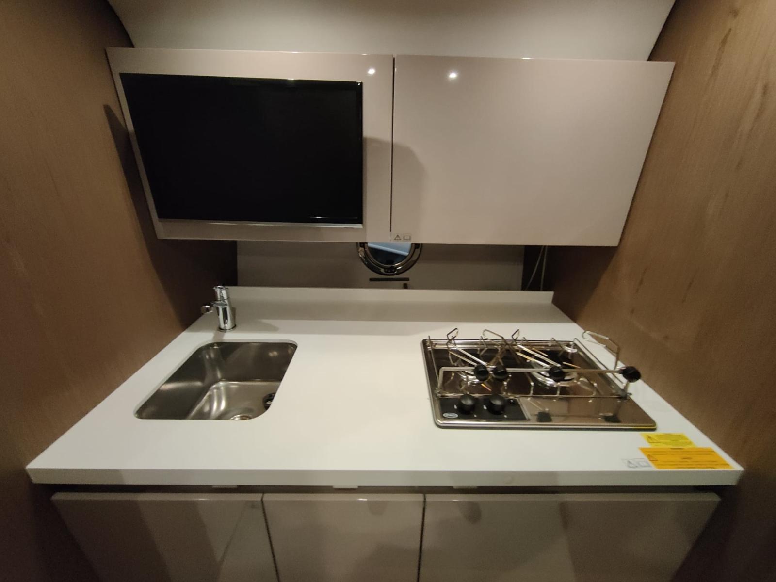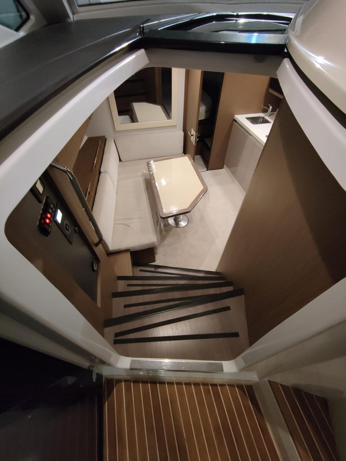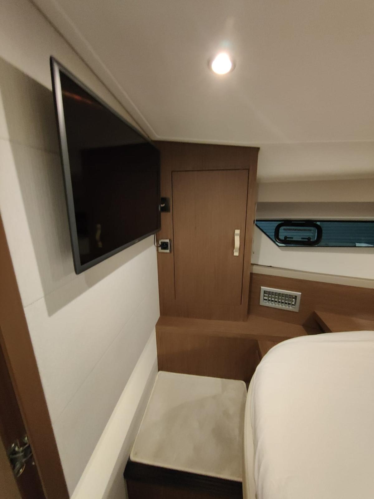 Teck dans la plate-forme, teck dans le cockpit, table de cockpit pliante, cuisine dans la plate-forme, joystick, menottes électroniques, volets électriques, gps, échosondeur, klaxon, vhf, lumières dans le cockpit, guindeau électrique, ancre et chaîne, climatisation, tv,