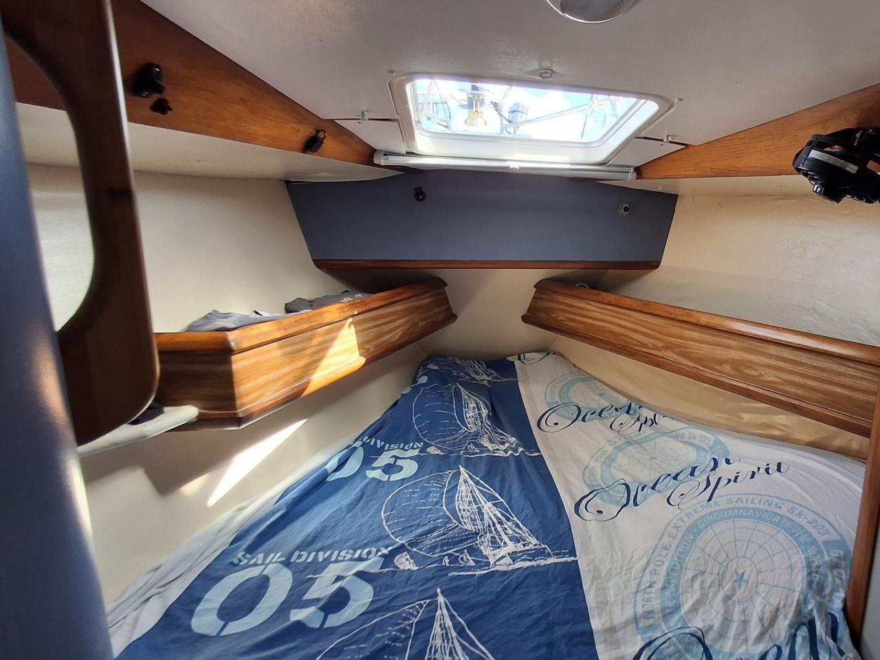 Une cabine avant tribord avec deux lits superposés