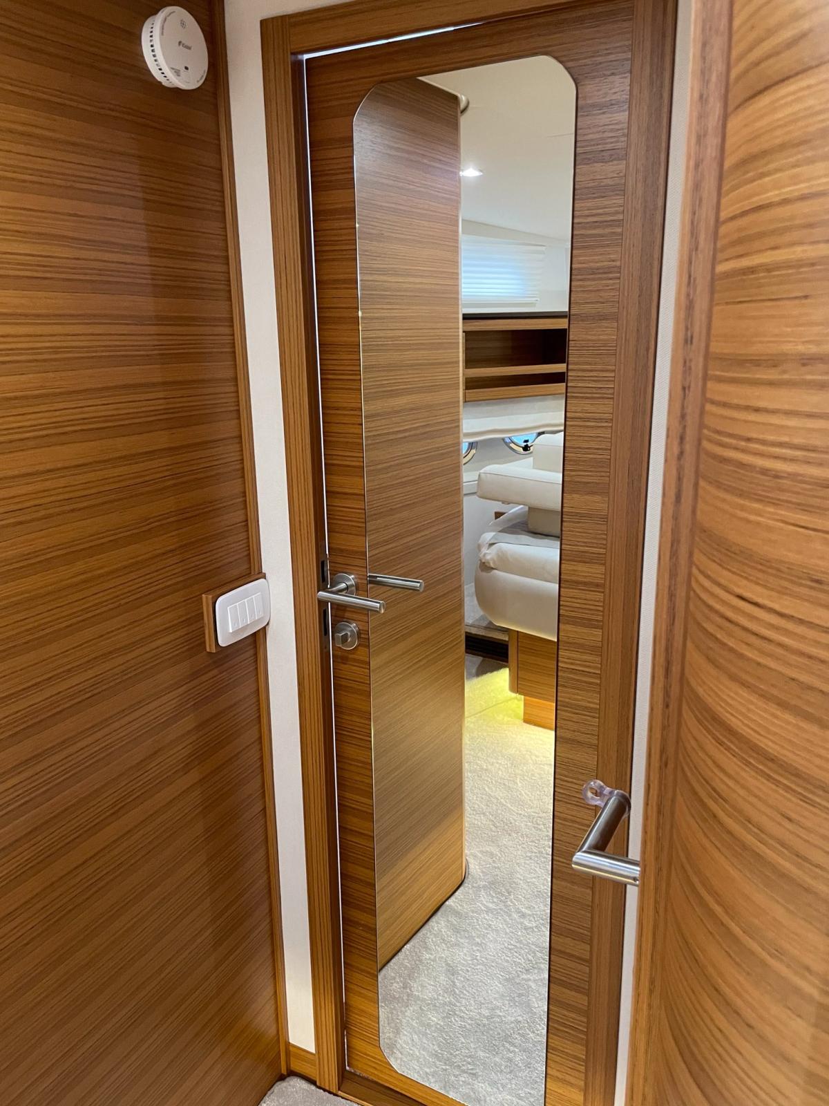Pont en teck éco dans le cockpit, les ponts et le pont avant • Cache-abris extérieurs en toile du cockpit • Pare-brise et couvercle extérieur en treillis et fenêtres latérales • Système de climatisation à cycle inversé tropical, quatre unités (salon, cabines invité et cabine principale) 46 000 BTU • Raccordement à l’eau • Lavage de chaîne et d’ancre, 12V, avec tuyau et buse • Ensemble d’amarrage (6 ailes, 4 x conduites d’amarrage) • Lave-linge/sèche-linge 8 kg / 5 kg, 230V (option réservoir d’eau grise obligatoire) • Lave-vaisselle 6 personnes 230V (option réservoir d’eau grise obligatoire) • Générateur (diesel) 11 kW/50Hz • Propulseur arrière avec 2 x batterie AGM • Balise de recherche avec télécommande à commande électrique • Cuisine flybridge (réfrigérateur, barbecue électrique, évier avec mélangeur), couvercle de protection • Machine à glace à côté du réfrigérateur sur la passerelle volante • Bimini extra large sur la passerelle avec supports en acier inoxydable à la proue et à la poupe inclus. Éclairage LED - Protections pour les coussins de bain de soleil sur la passerelle volante - Stabilisateur gyroscopique (rapide) - Plateforme hydraulique - Tenderlift (capacité maximale de levage : 300 kg) - Mise à niveau : Plateforme hydraulique d’une capacité de 500 kg - Support pour dériveur sur la plateforme « Pop up Cockks » (capacité maximale de levage : 150 kg) - Passerelle hydraulique avec télécommande de 2,5 mètres - 2 cabestans (treuil électrique arrière PORT+ STB) - Éclairage indirect LED (lampe de marche sur le pont, sur les escaliers d’accès à la passerelle volante, passerelle, salon, escaliers et poste de pilotage) - Store-sun électrique rétractable dans le cockpit - 2 x doubles feux sous-marins Lumishore à l’arrière reliés au traceur Simrad - Armoire de rangement dans la salle de stockage du salon - Système de gestion des câbles d’alimentation à quai Cablemaster, électrique (pour la climatisation un second option peut être sélectionné) - Pack miroir : Miroir de 1,6 m x 40 cm sur chaque porte de cabine
