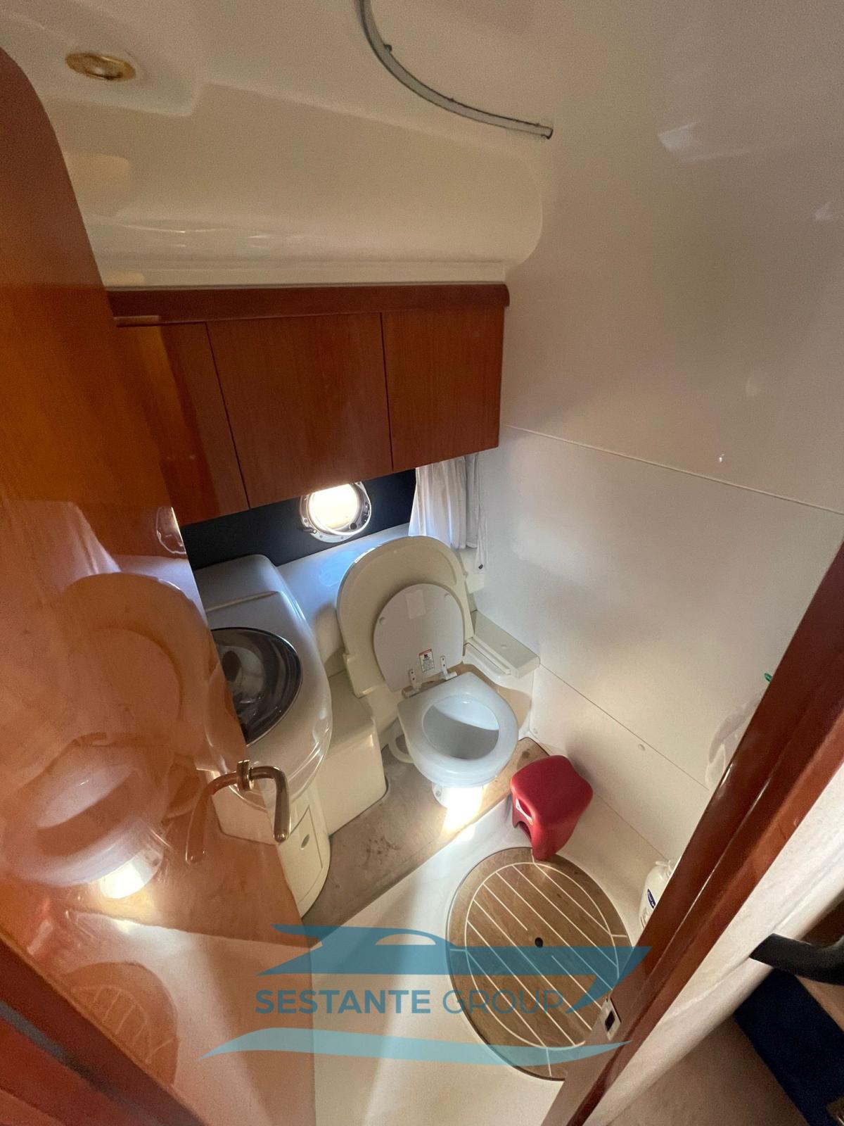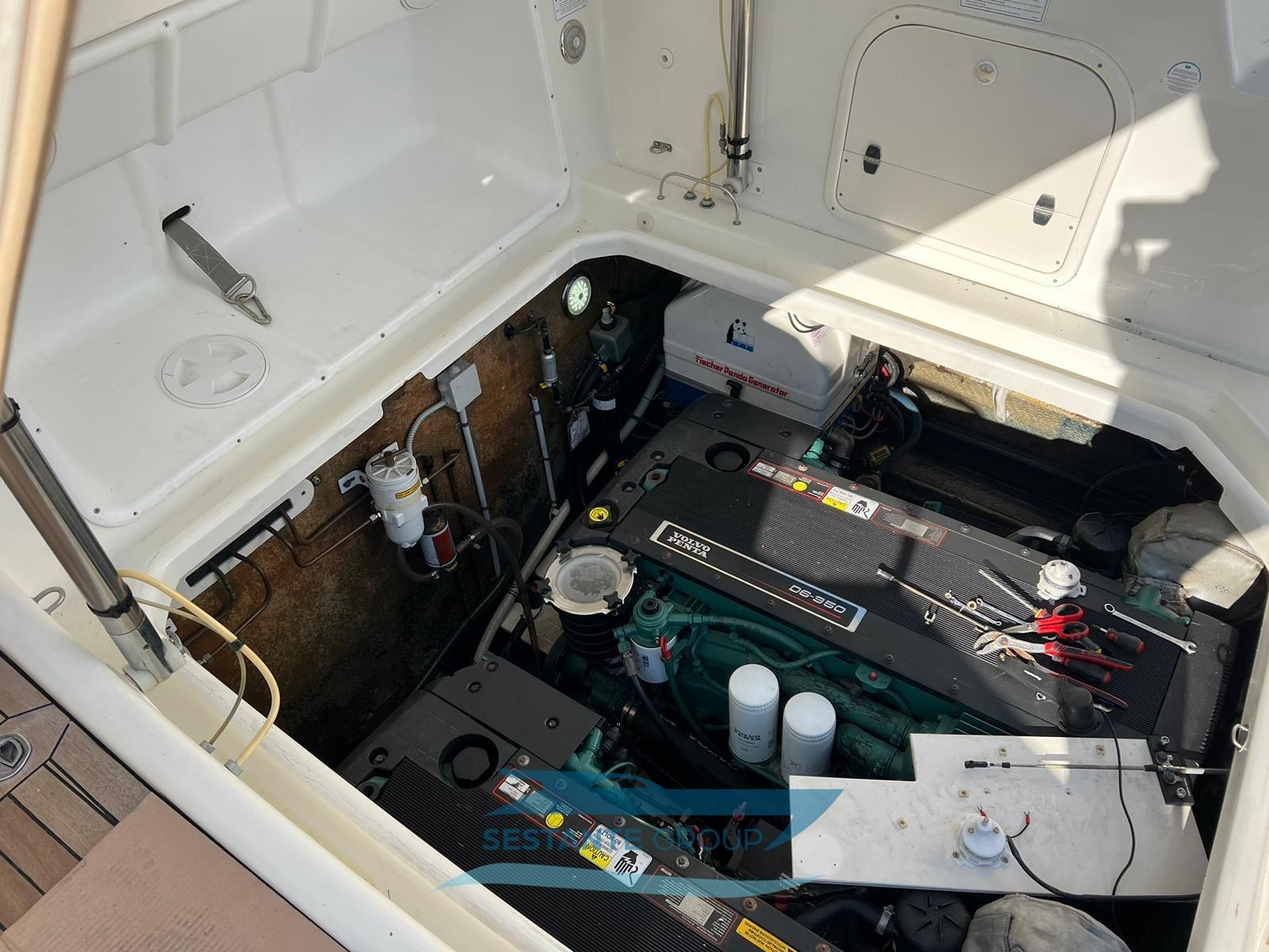Eau sous pression, 5 Batteries, Douche de cockpit, Phare de poursuite, Flaps électriques, 2 Flaps hydrauliques, Indicateurs de flaps, Lavabo dans le cockpit, Éclairage de courtoisie, Spots sous-marins, Passerelle, Plateforme arrière, Pompe de cale manuelle, Pont en teck, Prise de quai, Connexion eau sous pression à quai, Rollbar, Guindeau électrique, Echelle de bain, table de cockpit, Corne, Pont en teck.