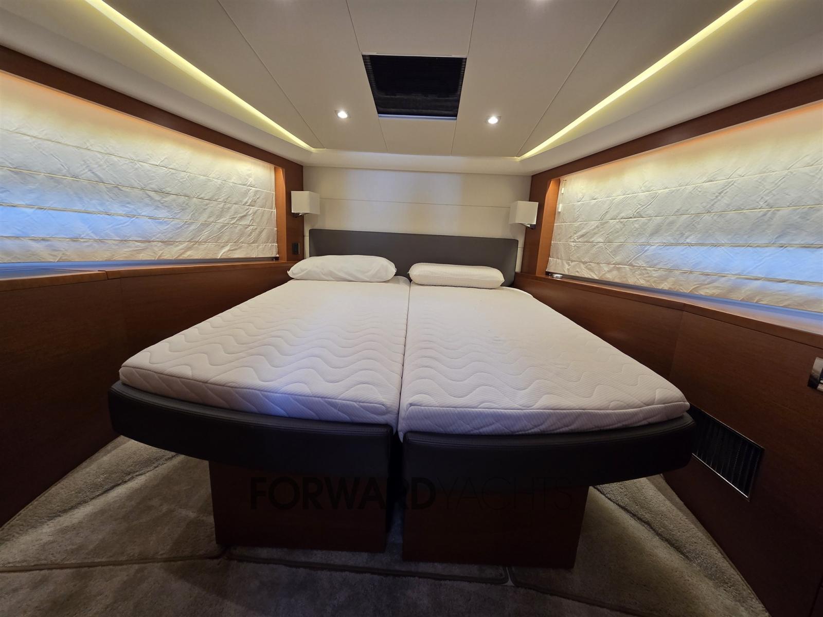 Propulsé par deux moteurs Volvo IPS 600 de 435 ch chacun, il offre une tenue de route fluide au joystick et une excellente efficacité de croisière.