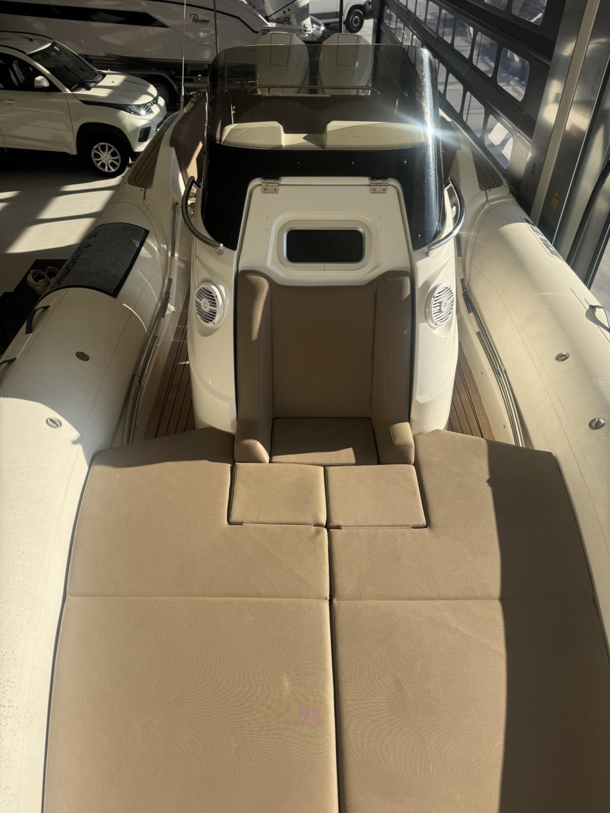 Le bateau est entièrement optionnel et équipé d’un navigateur, d’un réfrigérateur, d’une cuisinière à gaz et d’un évier, solution parfaite même pour de longues excursions d’une journée. La finition VHF est complétée par une prise USB et des protections solaires à l’avant, au centre et à l’arrière, garantissant un confort à tout moment de la journée.