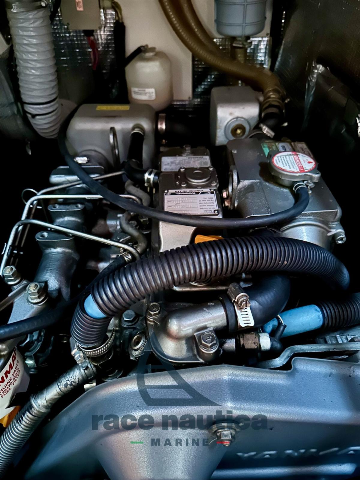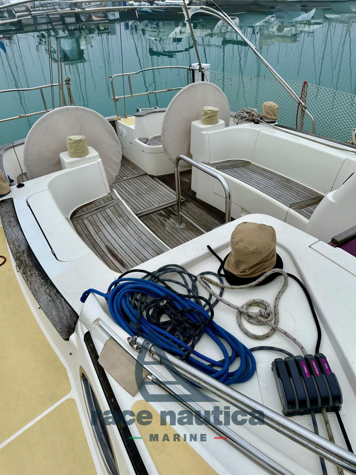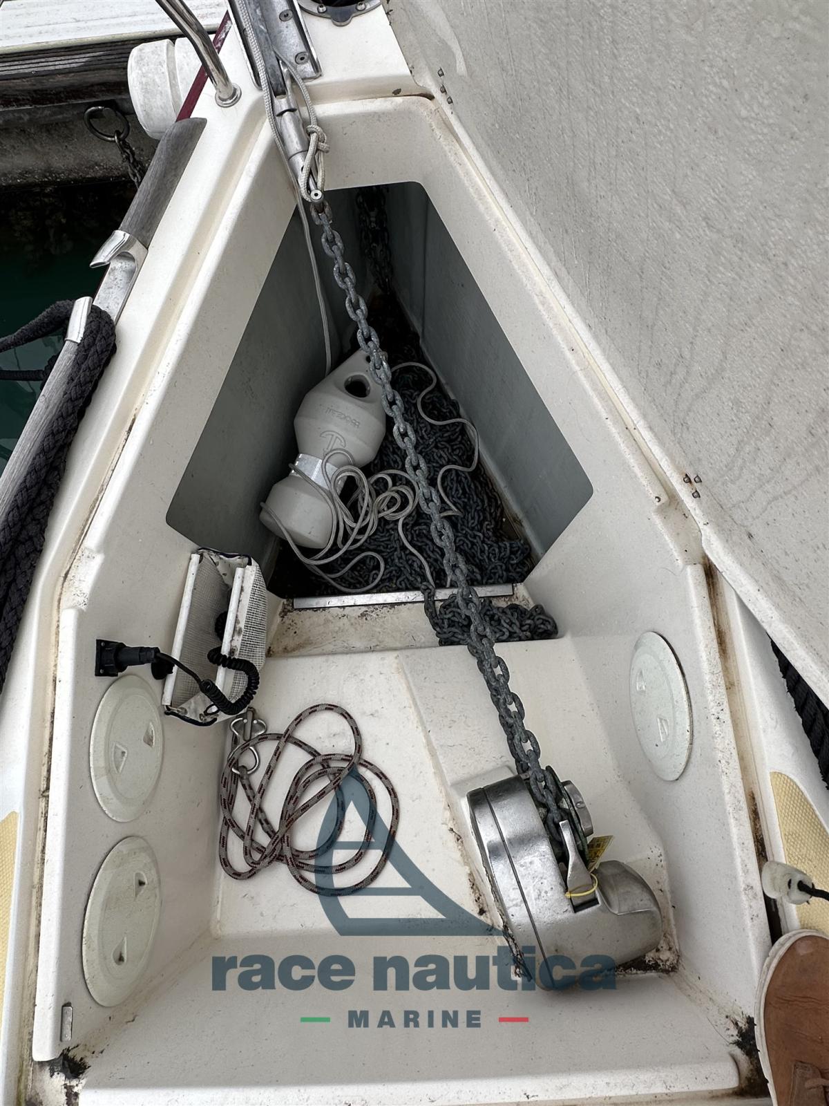 Alarme moteur, Eau sous pression, Câble d’alimentation à quai, Couleur spéciale, Douche de cockpit, Double barre à roue, Pompe de cale manuelle, Prise de quai, Guindeau électrique, Gréement monotoron, Echelle de bain, Windex.