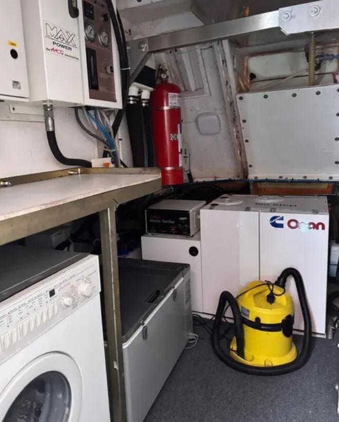 Alarme moteur, Eau sous pression, Douche de cockpit, Garage à annexe, Passerelle, Plateforme arrière, Pont en teck, Cockpit en teck, Prise de quai, Connexion eau sous pression à quai, Guindeau électrique, Echelle de bain, Winch électrique arrière.