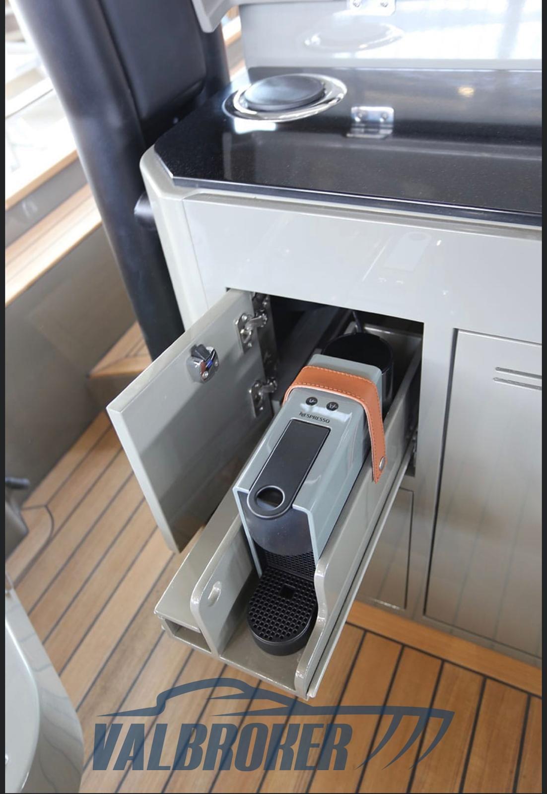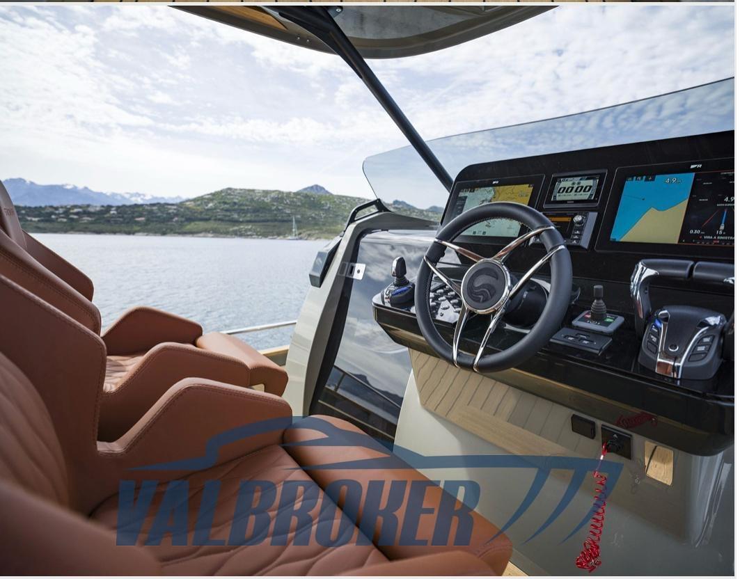 Toit rigide, feux LED sur le pont et le bord-canon, chaire d’étrave, couvre-couche de poupe, mâts de drapeau, contrôle électronique du moteur,