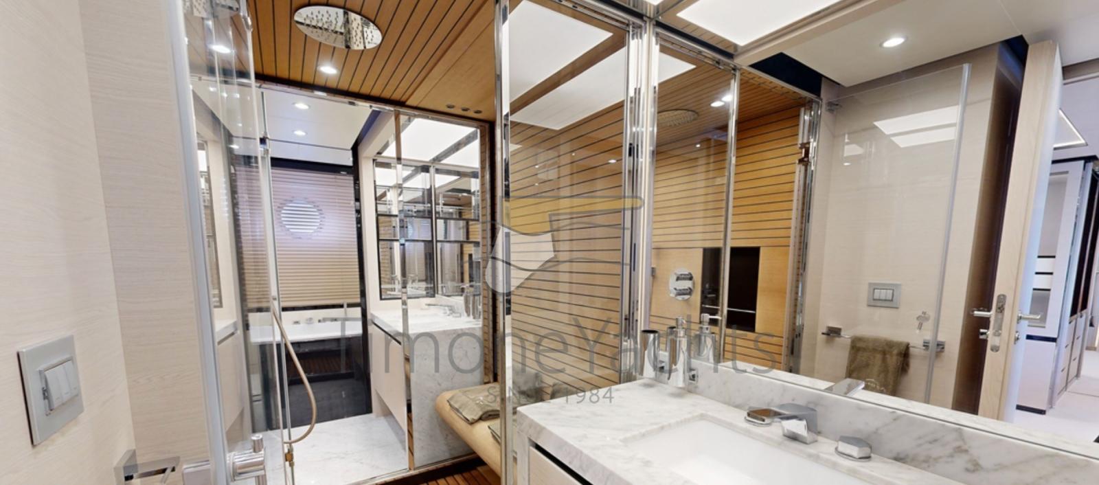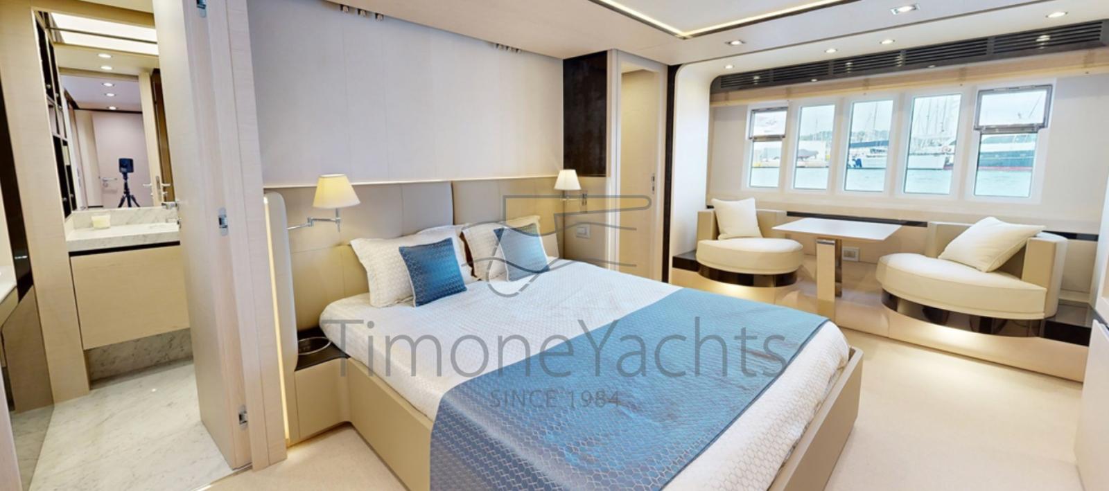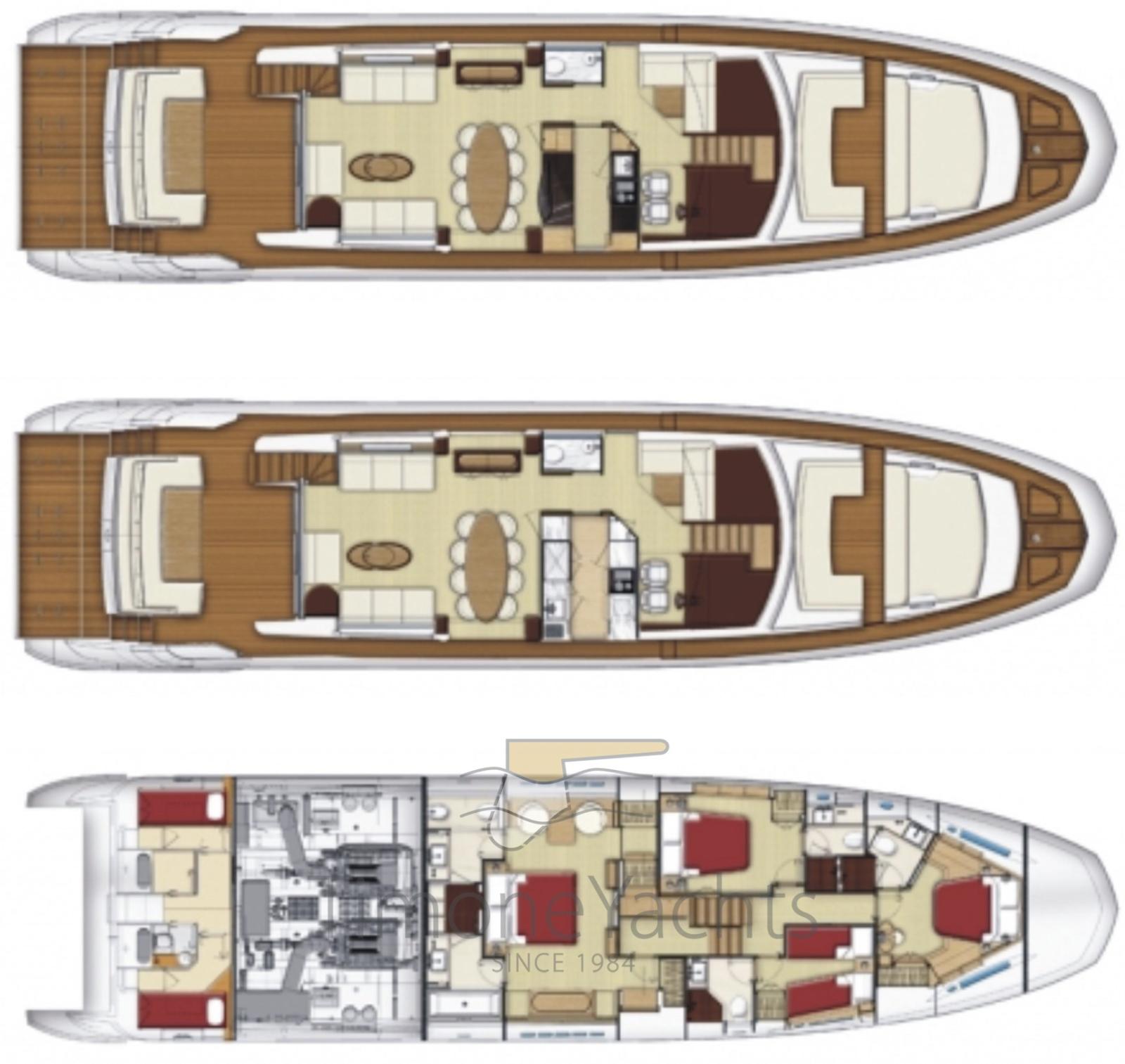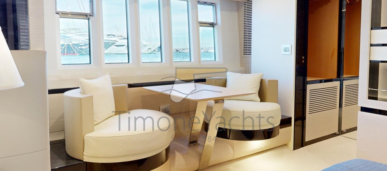 L’Azimut 80 a connu un succès commercial immédiat grâce à son agencement raisonné et ses volumes généreux : un salon très élégant, des cabines spacieuses aux tons clairs, une cuisine séparée avec accès extérieur, un flybridge et un pont avant gigantesques.