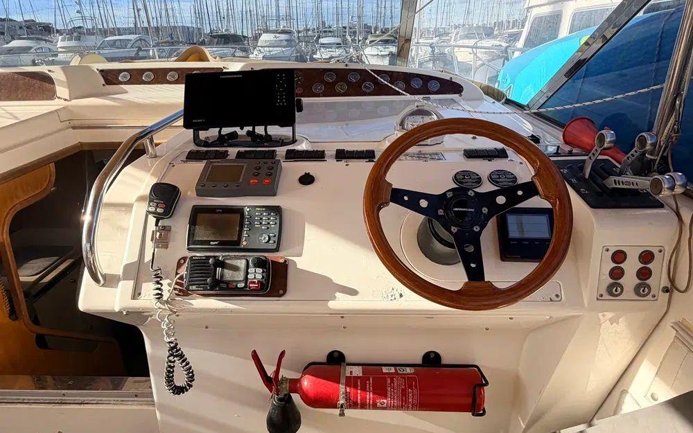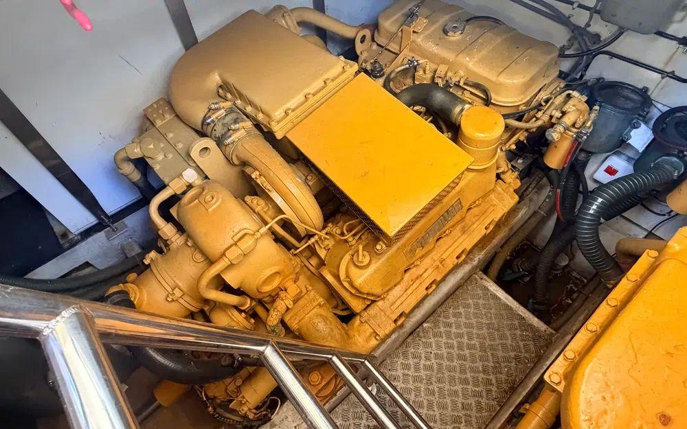 2 x Caterpillar diesel 435 cv, reconnue pour sa longévité et sa fiabilité.Environ 1 250 heures moteur.Transmission par lignes d’arbres avec renvois d’angle.Mécanique saine, démarrage dès la première sollicitation, fonctionnement normal sans fumées ou bruits anormaux, entretien suivi.Électronique de navigation fonctionnelle et adaptée à la croisière.
