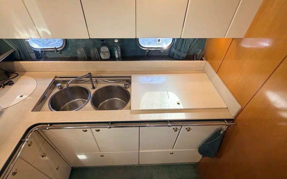 Intérieur confortable et chaleureux, typique des unités Fairline de cette génération.Carré lumineux offrant un espace de vie convivial.Cuisine équipée avec réchaud à gaz et four à gaz.Cabines confortables avec rangements adaptés à la croisière.Salle d’eau équipée de WC électrique et d'une douche séparée.Boiseries et selleries en bon état d’usage, en adéquation avec l’année de construction.