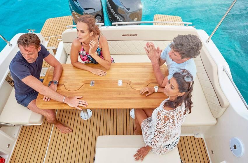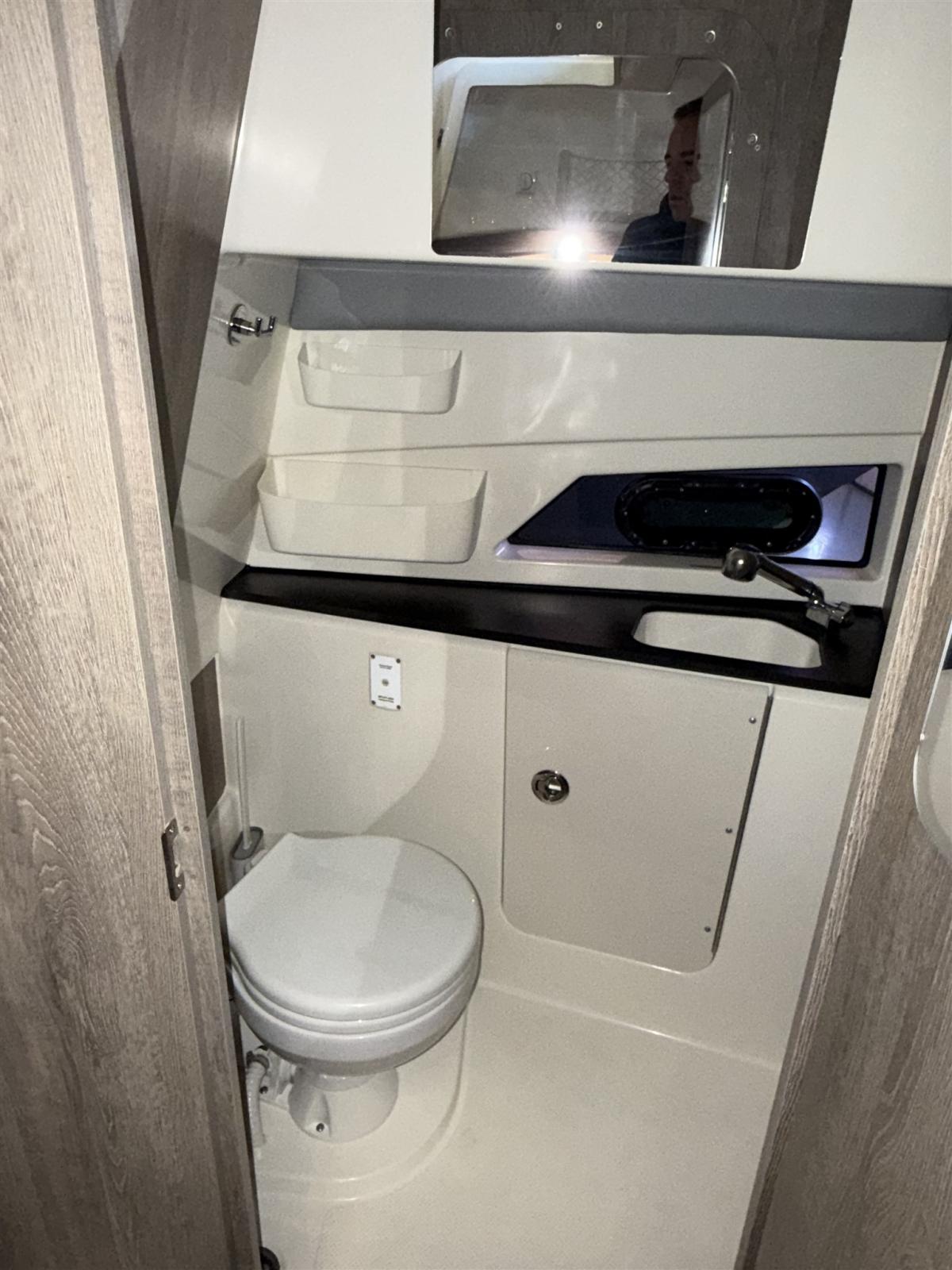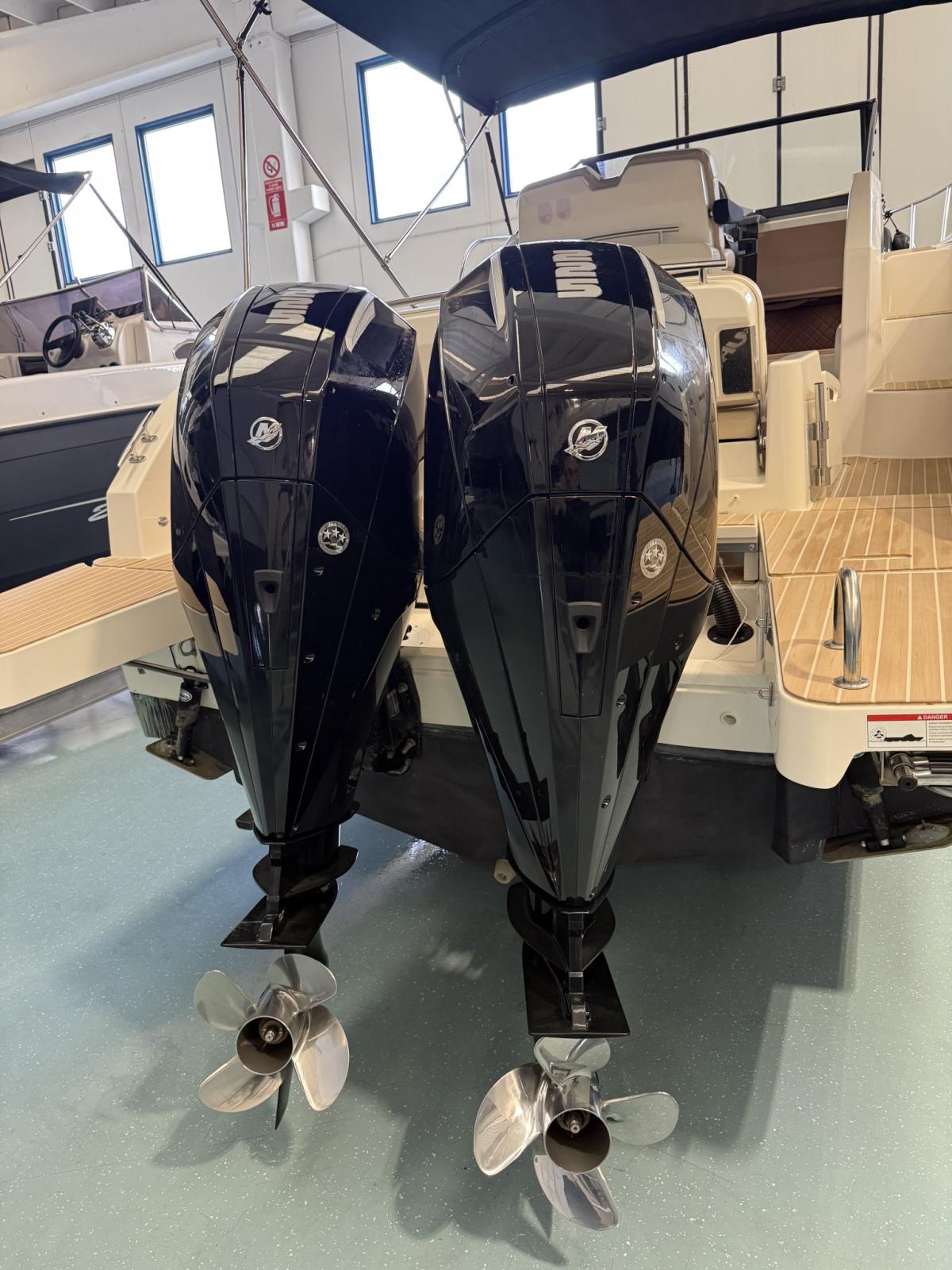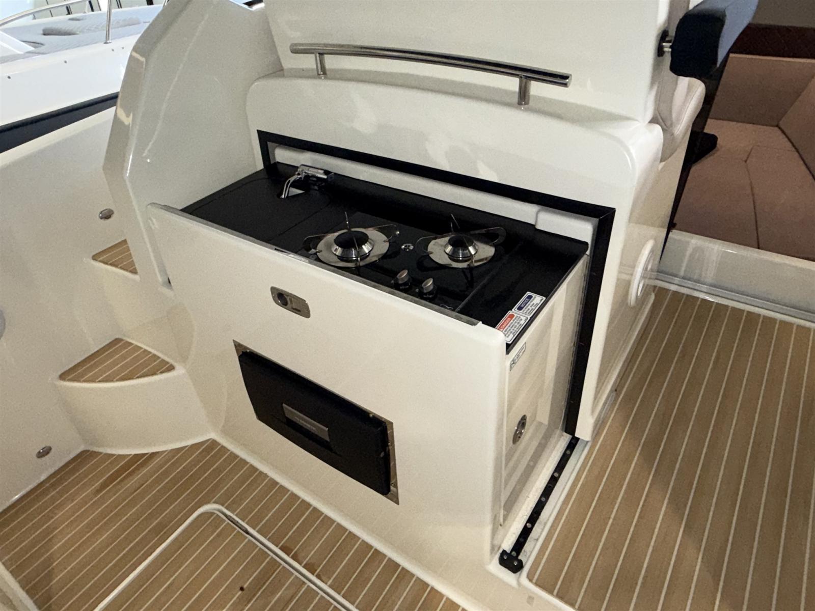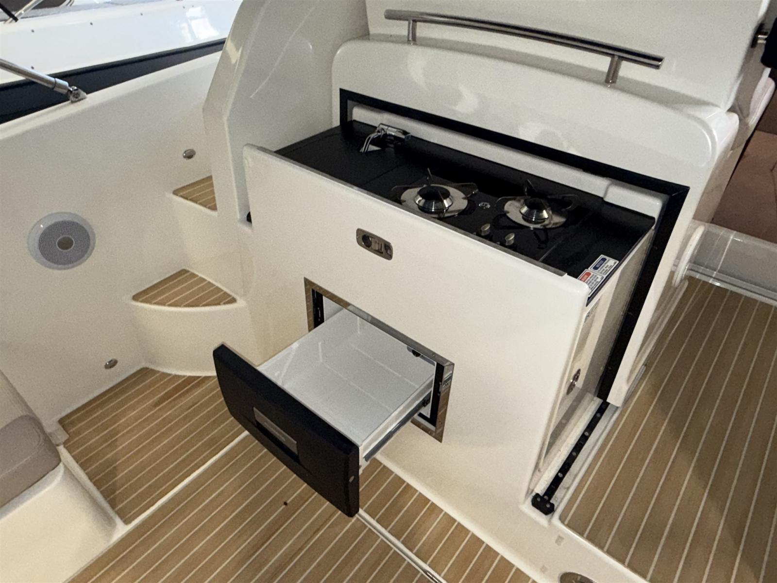 Alarme moteur, Eau sous pression, Câble d’alimentation à quai, Douche de cockpit, Flaps électriques, Indicateurs de flaps, Lavabo dans le cockpit, Éclairage de courtoisie, Défenses, Cockpit en teck (Flexiteek), Prise de quai, Connexion eau sous pression à quai, Guindeau électrique, Echelle de bain, table de cockpit, Corne.
