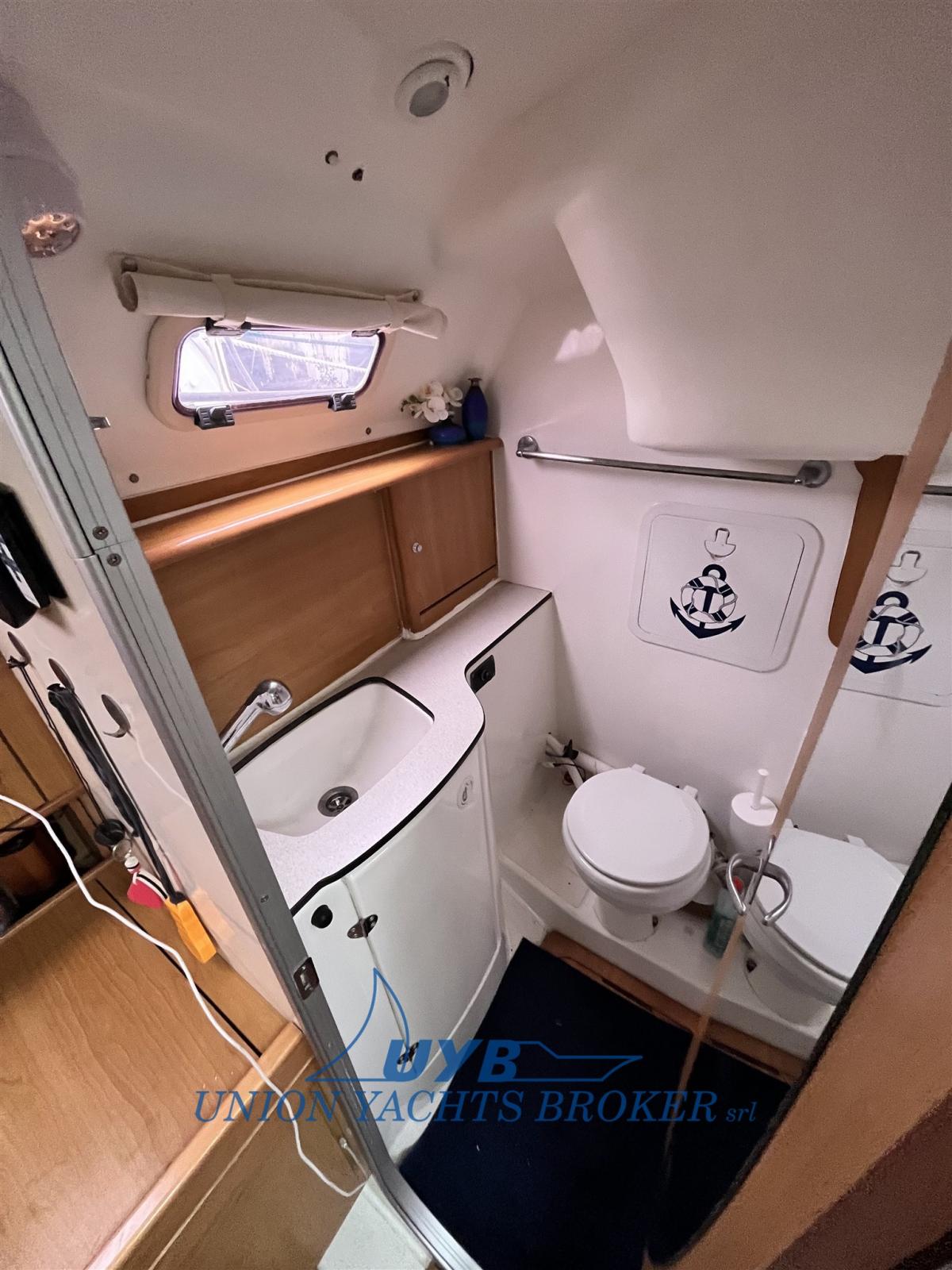 Eau sous pression, Batteries (gel 110A), Chargeur de batterie (220V), Douche de cockpit, Moniteur de batterie (Victron), Panneau solaire (60W con controller), Passerelle, Plateforme arrière (abbattibile), Pompe de cale manuelle, Prise de quai, Guindeau électrique (con pulsanti prua e telecomando), Echelle de bain, table de cockpit, 4 Winch.
