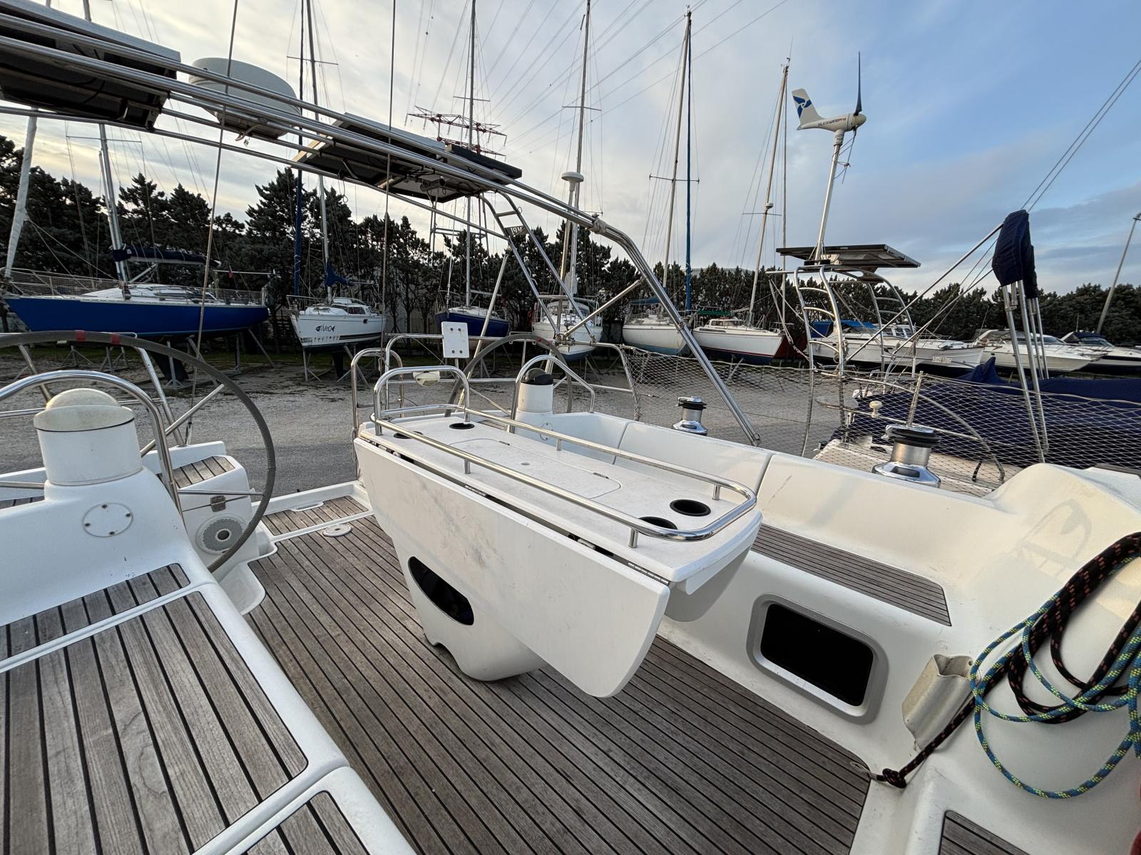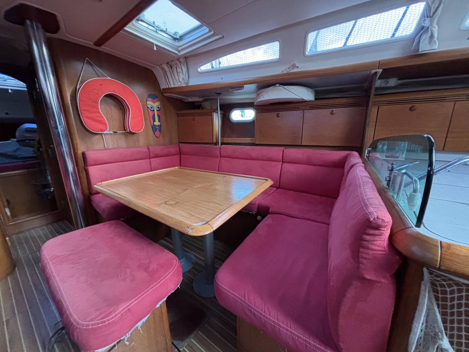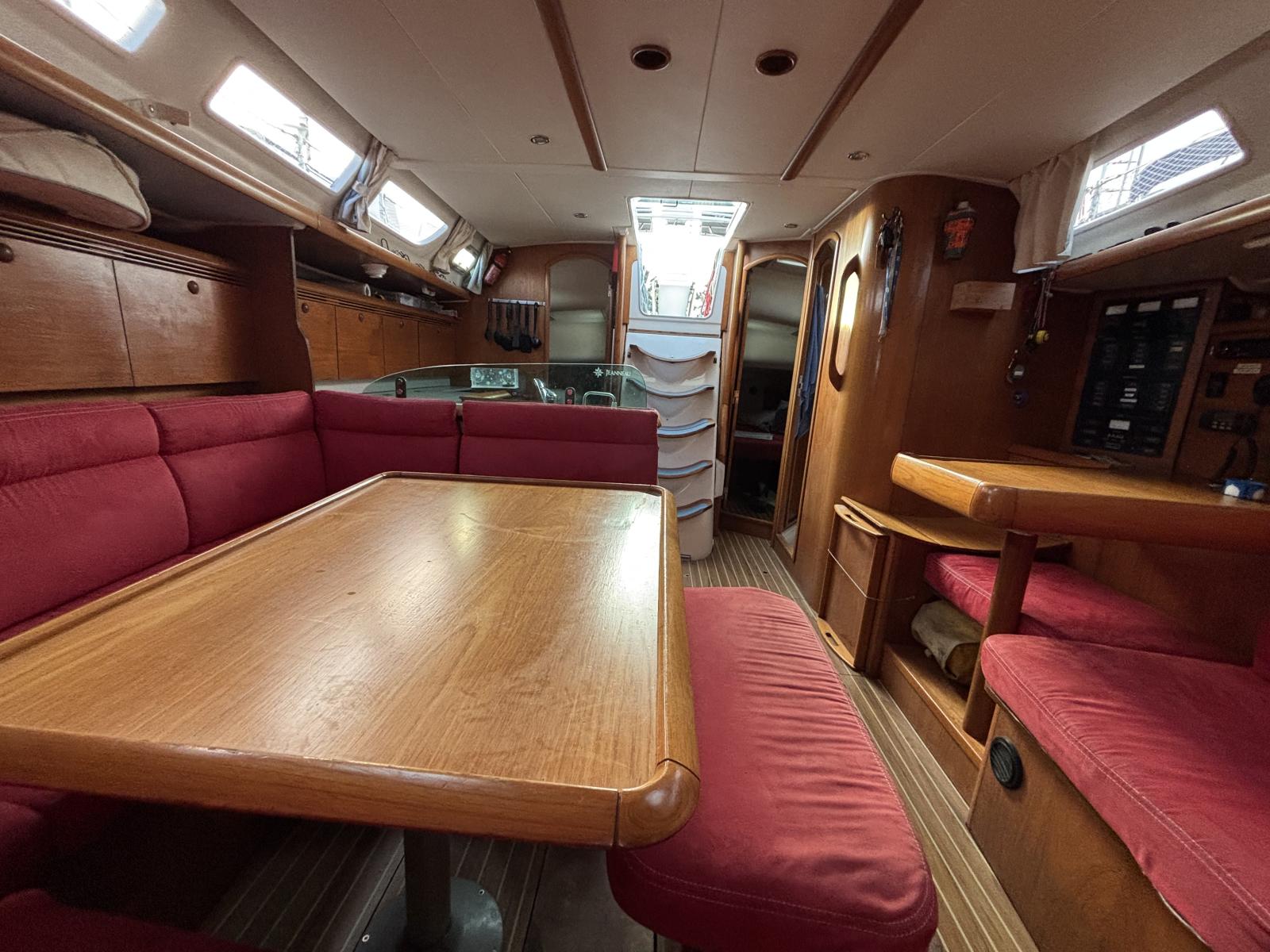 L’aménagement intérieur offre 4 cabines confortables (3 doubles + 1 twin), 2 salles d’eau avec WC marins, et un grand carré lumineux. Les nombreux rangements intelligemment répartis rendent la vie à bord agréable, même sur de longues périodes.