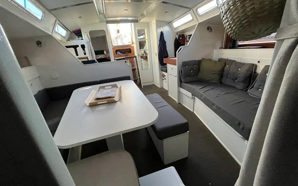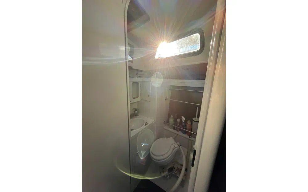 Avec 3 cabines, 6 couchages et un aménagement conçu pour accueillir jusqu’à 8 personnes, ce voilier vous garantit de partager d'excellents moments, de la sieste à bord à l'apéro sur la banquette extérieure. La salle de bain et le wc électrique sont de série, tout comme le confort : climatisation amovible, chauffe-eau, coin cuisine avec plaque, évier, frigo, rangements et même crédit supplémentaire si vous aimez les bonnes surprises : il y a la musique !