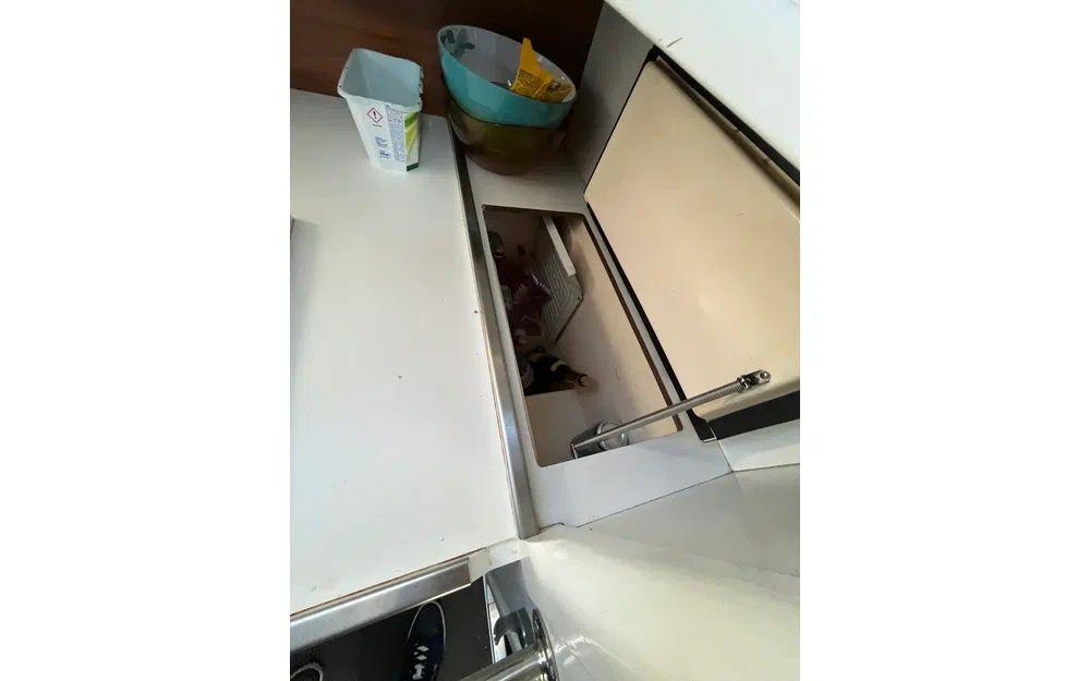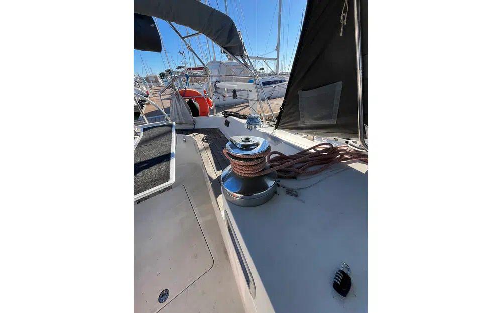 Que ce soit pour prendre les commandes ou simplement buller, tout est prêt ! GPS, pilote automatique, VHF portable et fixe, AIS, compas, sondeur, loch… et pour ceux qui restent à quai, les prises 220V, le circuit 12V/110V/220V et le chargeur de batteries sont de la fête. Côté navigation, vous profitez d’un grément complet : grand voile, génois sur enrouleur, lazy bag, winches, tangon de spi, tout est à portée de main. Ajoutez à tout cela le propulseur d’étrave pour faciliter les manœuvres, le guindeau électrique, campez l’annexe sur le bossoir et profitez de la plateforme arrière, douchette, échelle de baignade, et de lumières intérieures LED pour veiller tard !