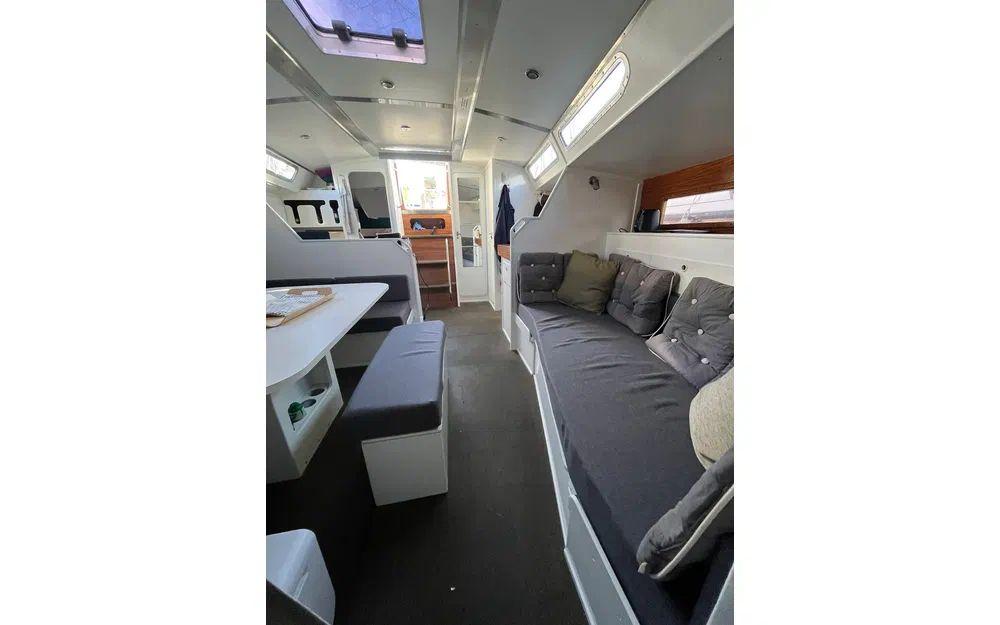 Mise à l’eau ? Pas vraiment, plutôt mise en attente de nouveaux projets avec ses seulement 380 heures moteur (50CV à la manœuvre, tranquille). Il ne vous reste qu’à choisir la direction : les îles ou les ports animés. Polyvalent, fiable, aussi à l’aise par vent de travers que pour profiter du soleil à quai, ce voilier d'occasion vous attend pour repartir à l’aventure... ou à la sieste, ça marche aussi. Prix : 110 000 € – et si vous êtes tentés, on peut même vous donner l’astuce pour réussir le nœud de chaise d’une main !