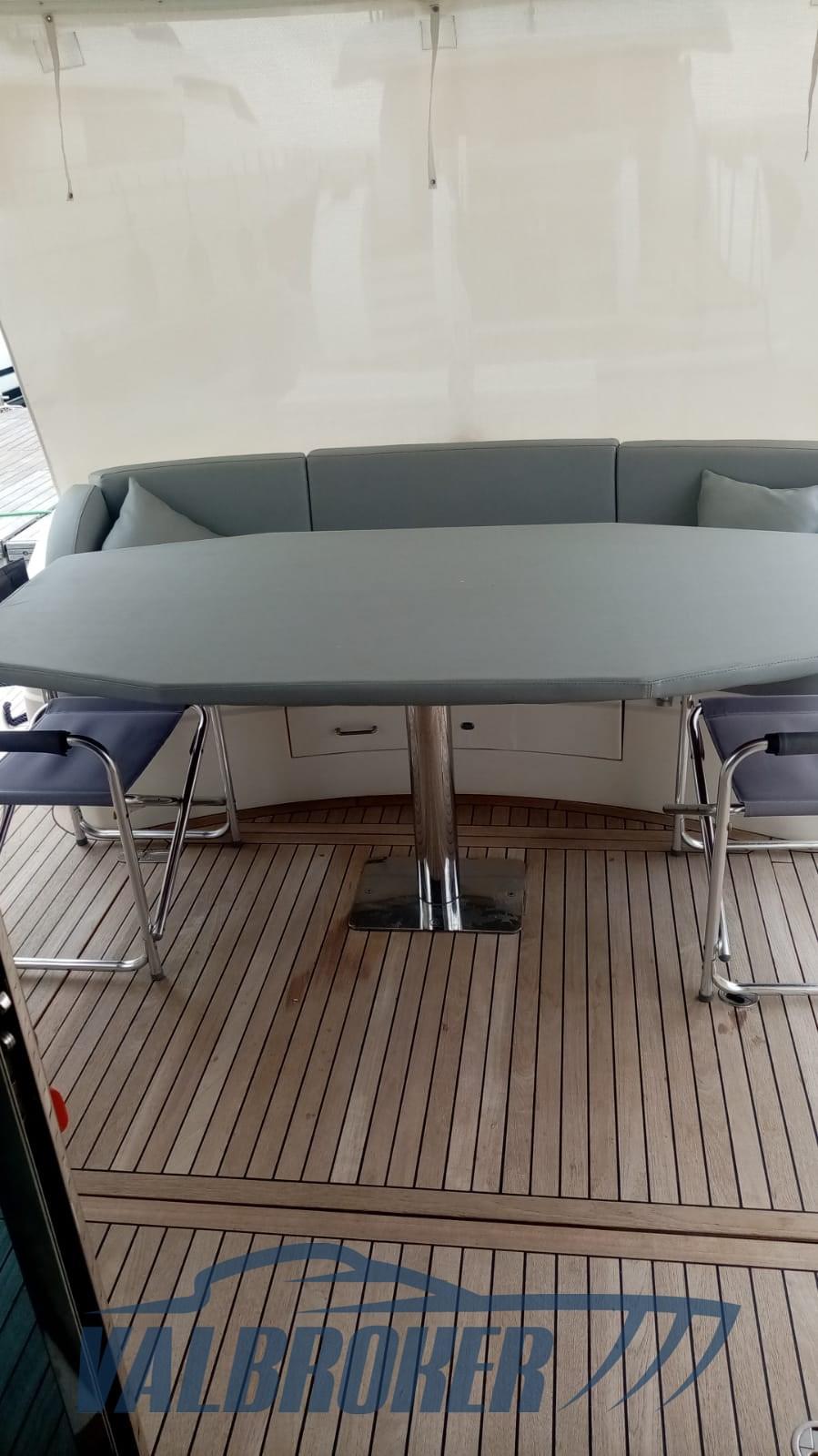 Eau sous pression, Passavant en teck, Chargeur de batterie (Mastervolt), 3 Propulseur d'étrave (sidepower, terza stazione comando in pozzetto), Phare de poursuite, Grue de flybridge (Besenzoni), Passerelle (TEAK, idraulica), Plateforme arrière (teak), Cockpit en teck (2022), table de cockpit (teak).