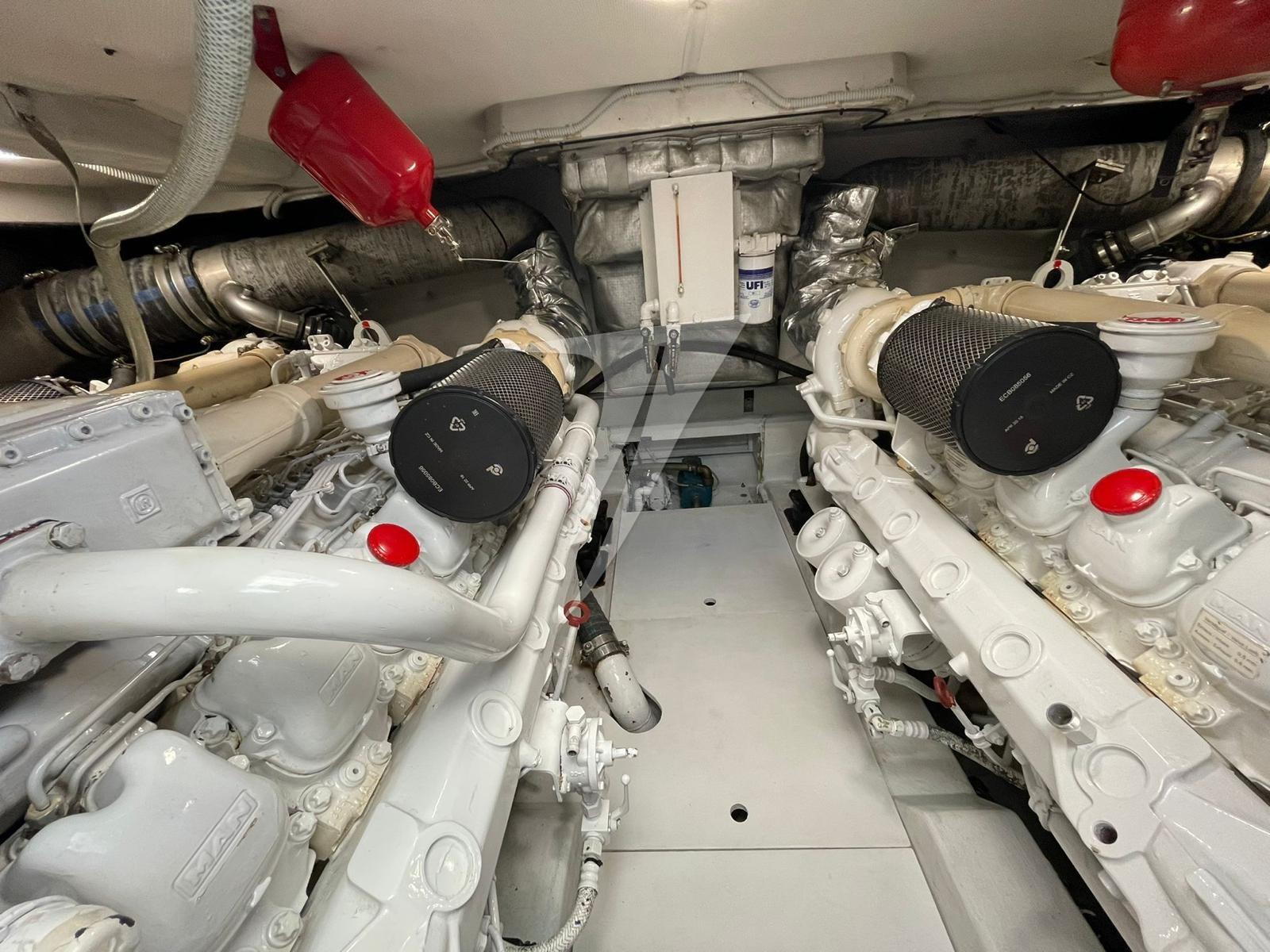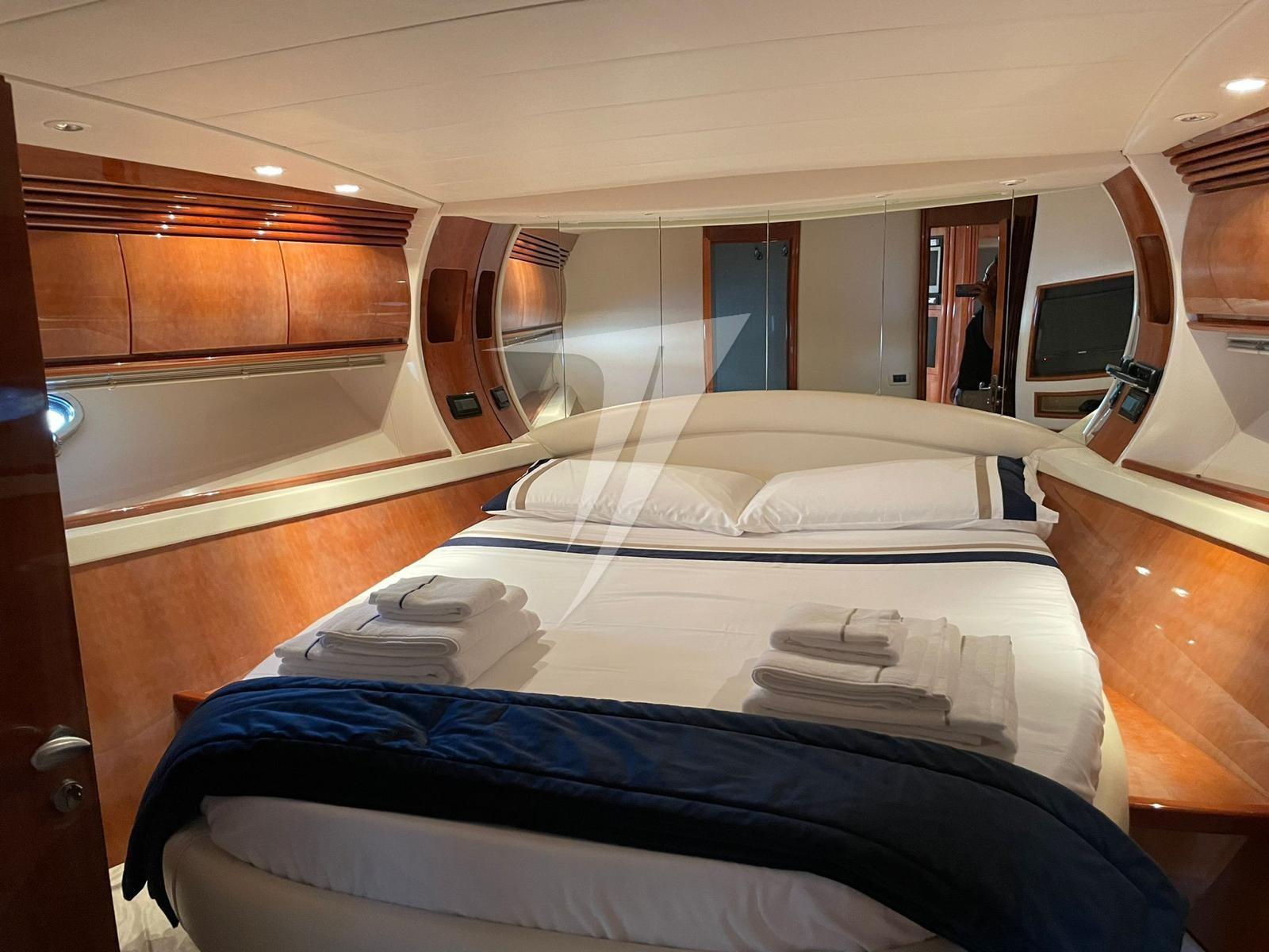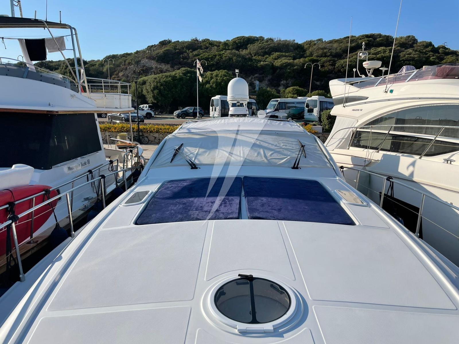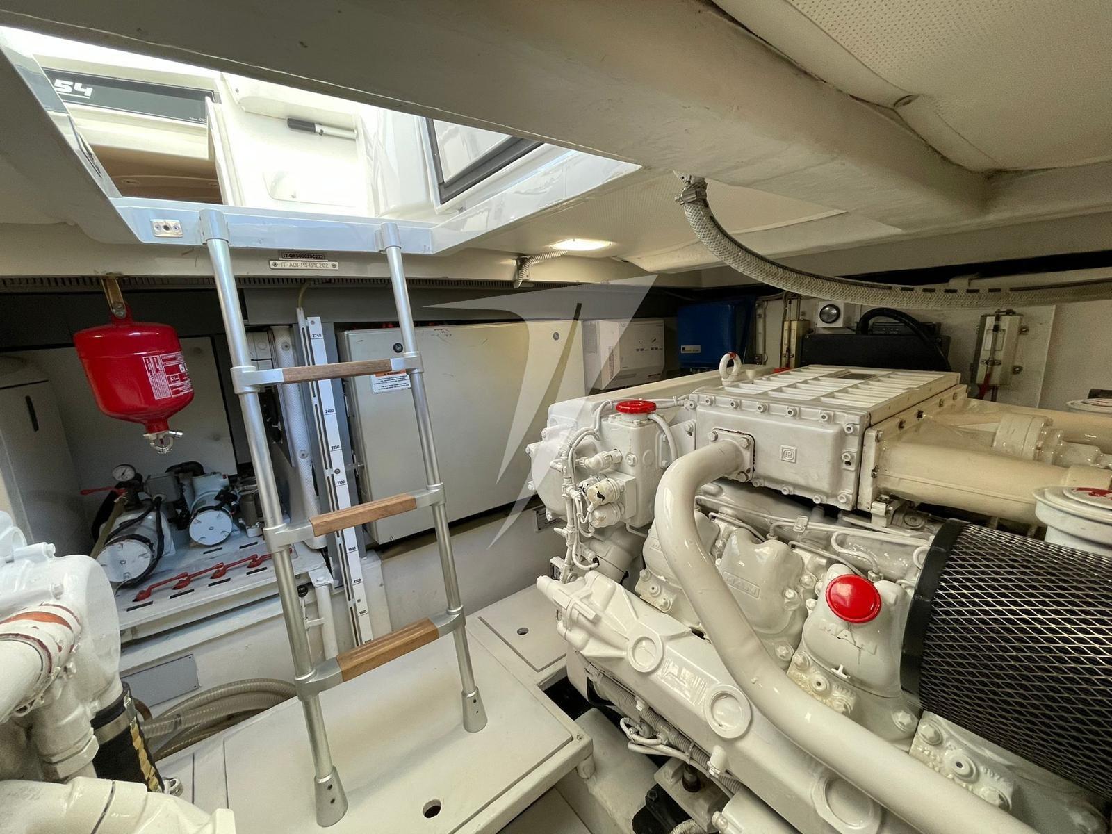 Alarme moteur, Eau sous pression, Douche de cockpit, Phare de poursuite, Flaps hydrauliques, Bossoirs, Hard top (elettrico), Compresseur de plongée, Indicateurs de flaps, Lavabo dans le cockpit, Éclairage de courtoisie, Spots sous-marins, Passerelle (idraulica), Plateforme arrière (teak), Pompe de cale automatique, Pompe de cale manuelle, Cockpit en teck, Prise de quai, Onduleur, Guindeau électrique, Echelle de bain, table de cockpit, Table pliante de salon, Annexe, Corne, Winch électrique arrière.