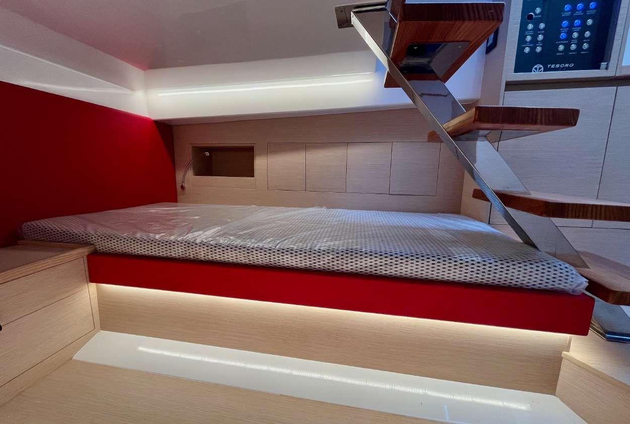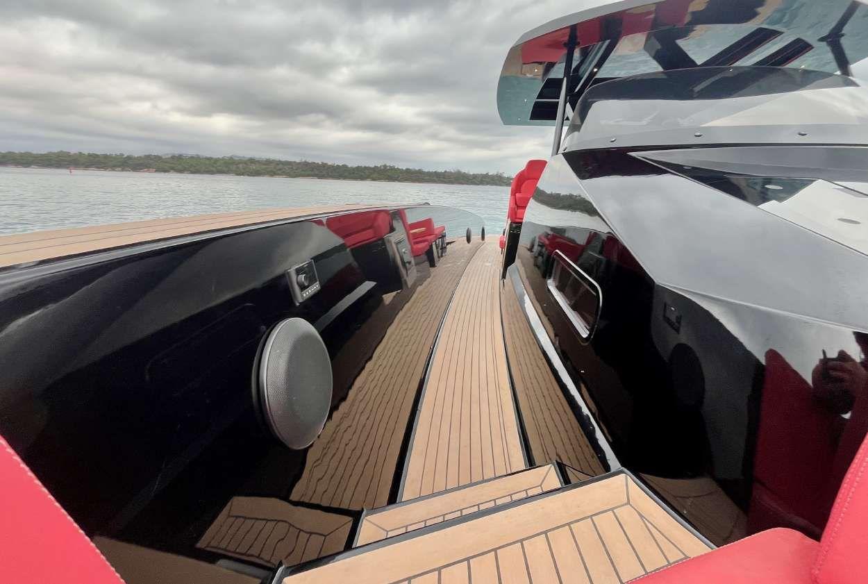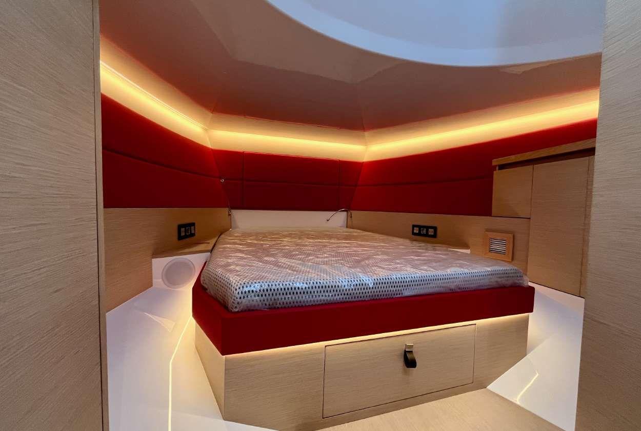 GPS Raymarine / Pilote automatique / Moteurs : 30 heures / Éclairages sous-marins / VHF / Propulseur d’étrave / Chargeur de batteries / Système audio Fusion / 4 couchages / WC et douche / Agencement remarquable / Grande plateforme de bain autour des moteurs / Style unique
