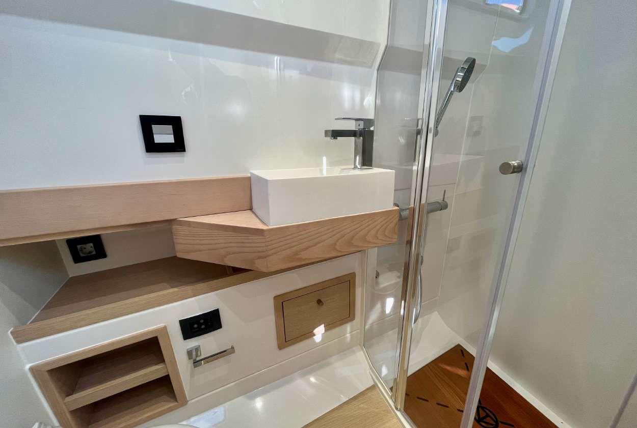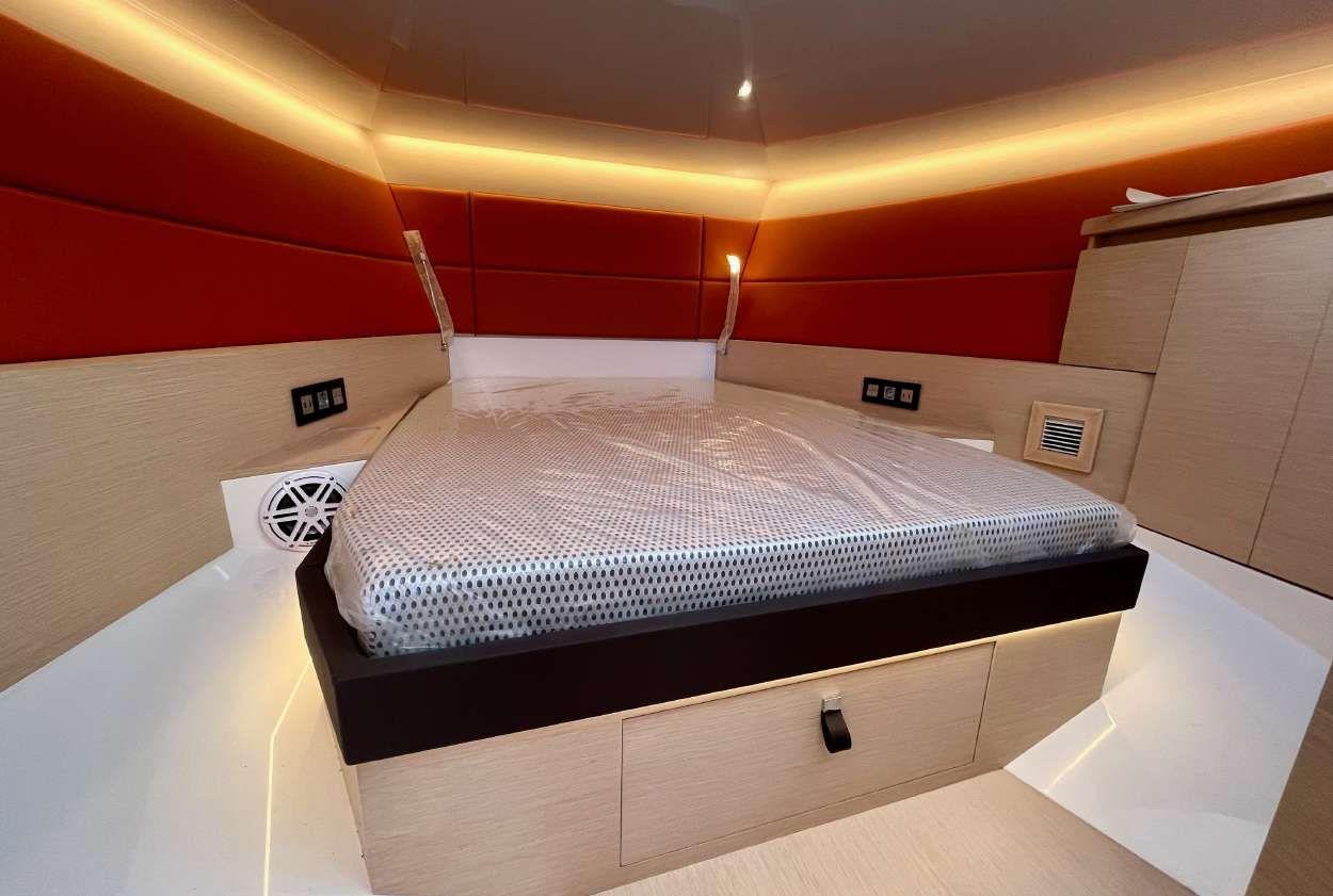 GPS Raymarine / Moteurs : 90 heures / Éclairages sous-marins / VHF / Propulseur d’étrave / Chargeur de batteries / Système audio Fusion / 4 couchages / WC et douche / Climatisation / Groupe électrogène / Machine à glaçons / Joystick / Excellent agencement / Très grand bain de soleil avant / Bain de soleil arrière / Plateforme de bain
