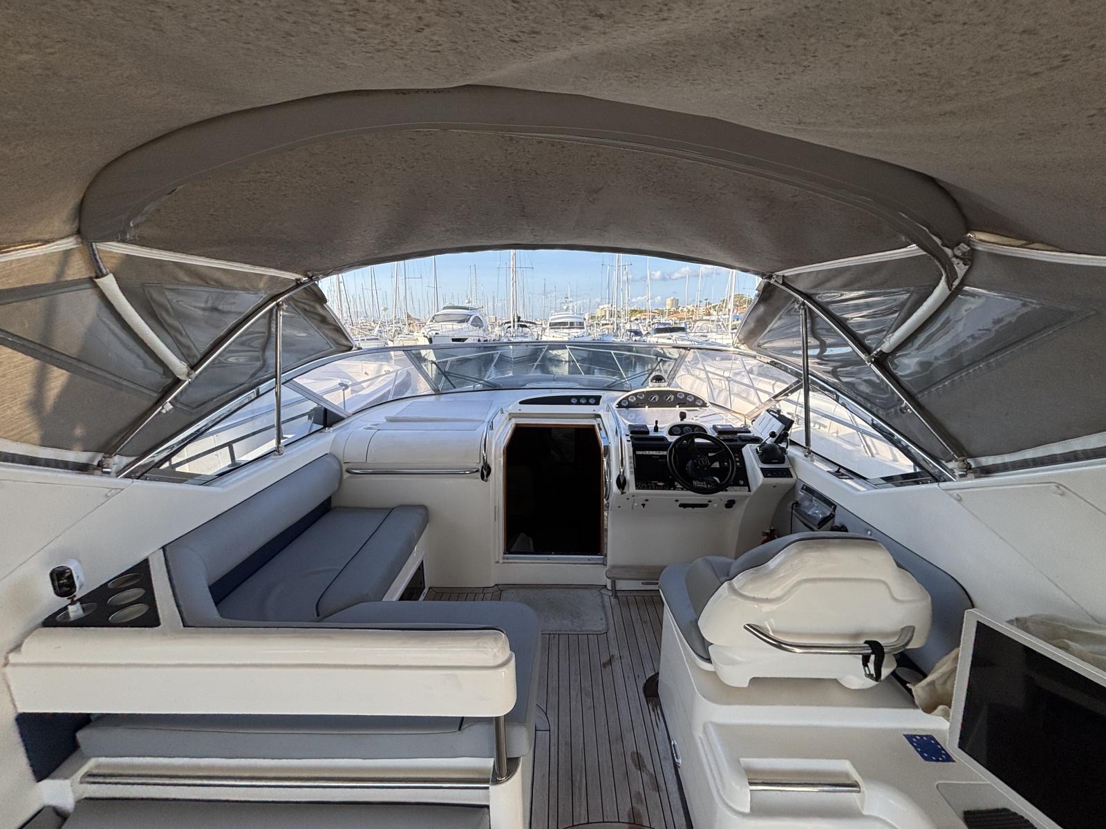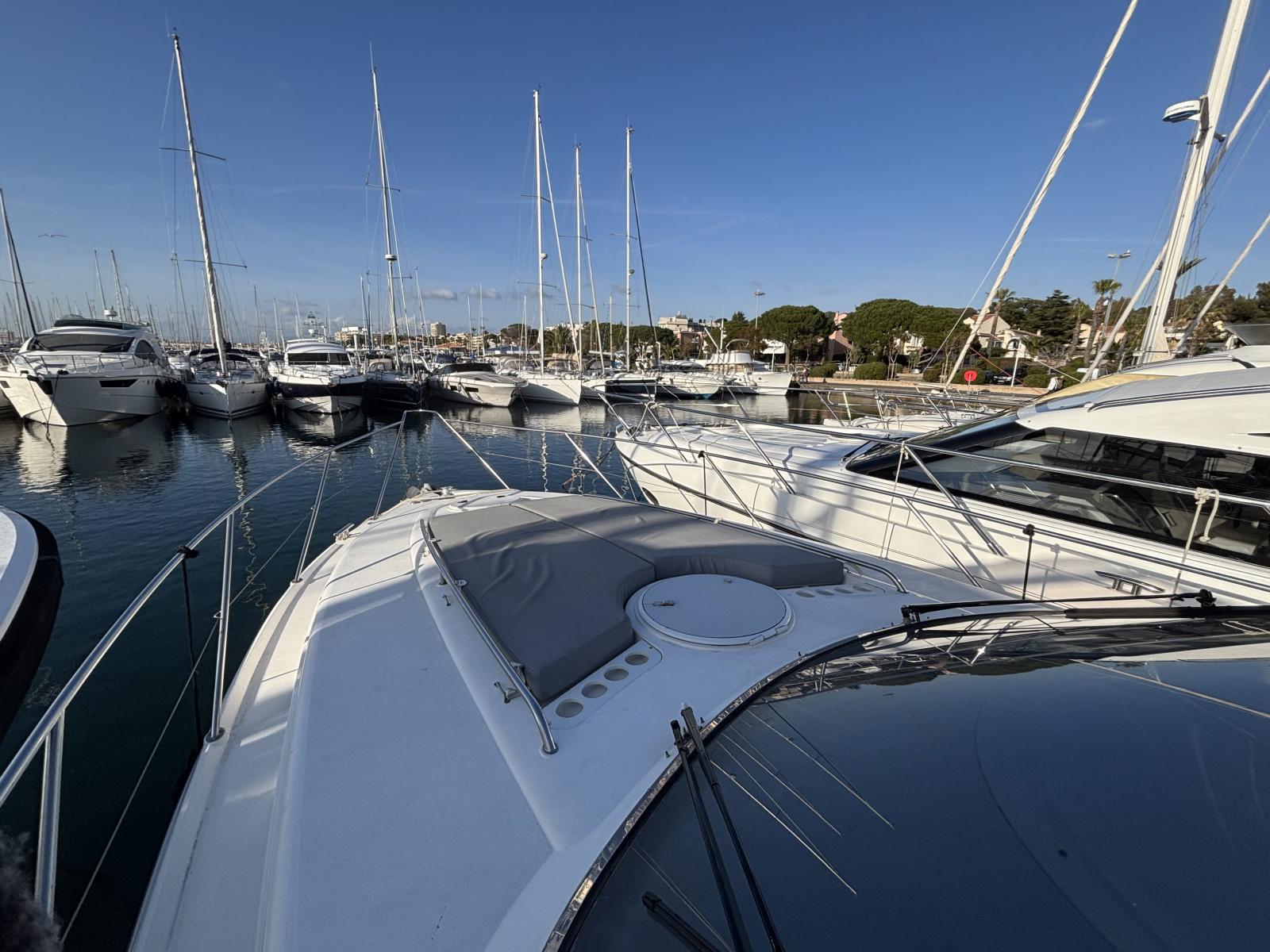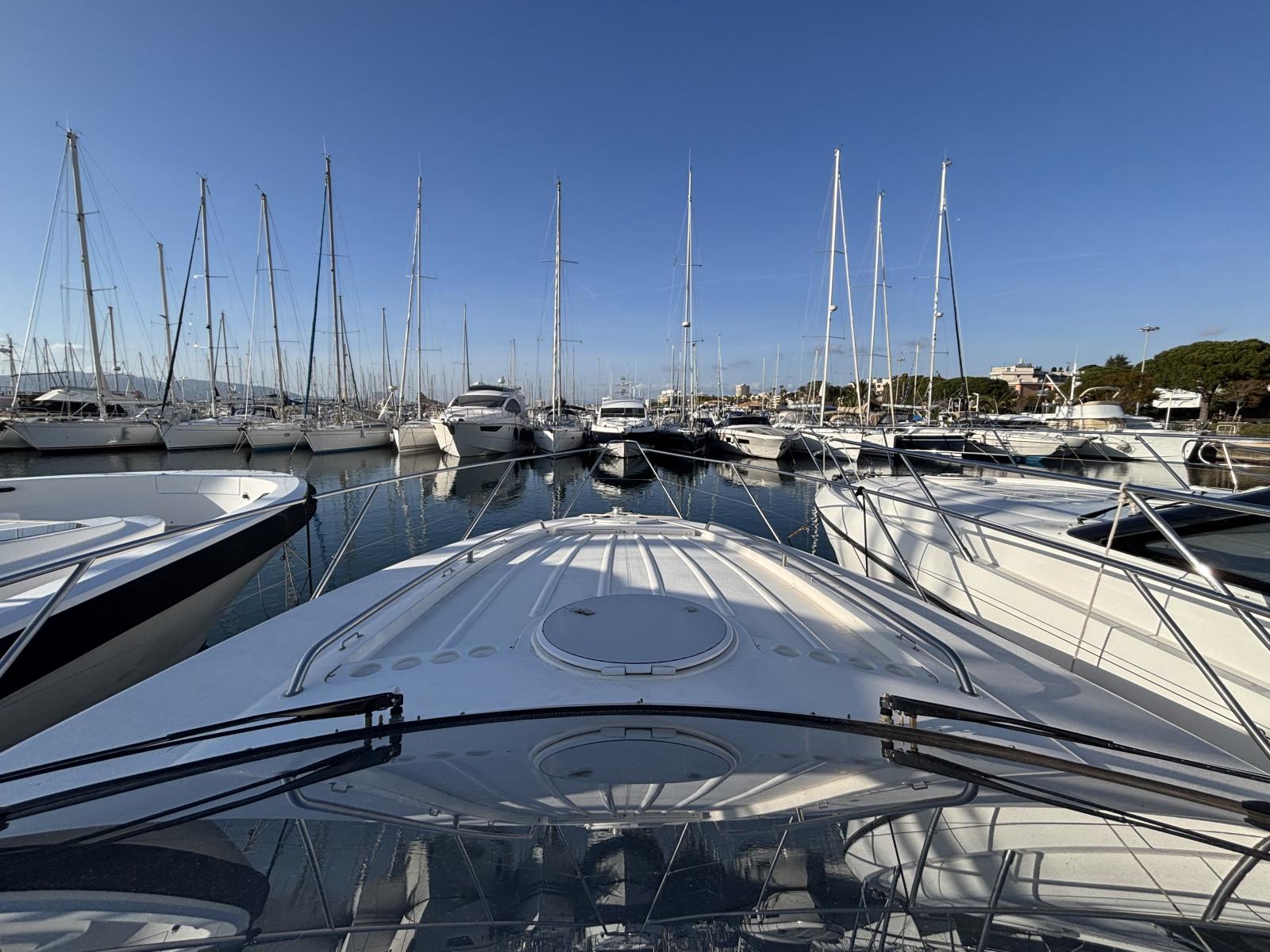 Entretiens récents : hydro-gommage 2022, révision moteurs complète 07/2024, antifouling premium + anodes 07/2024, lustrage coque 07/2024, hélices neuves, ballon d’eau chaude, pompes douche et cales, clim révisée, bâches neuves. En 03/2025 : Pro-Speed hélices, filtres moteurs et batterie service neufs. Réservoirs carburant pleins. Unité saine, suivie, prête à partir.