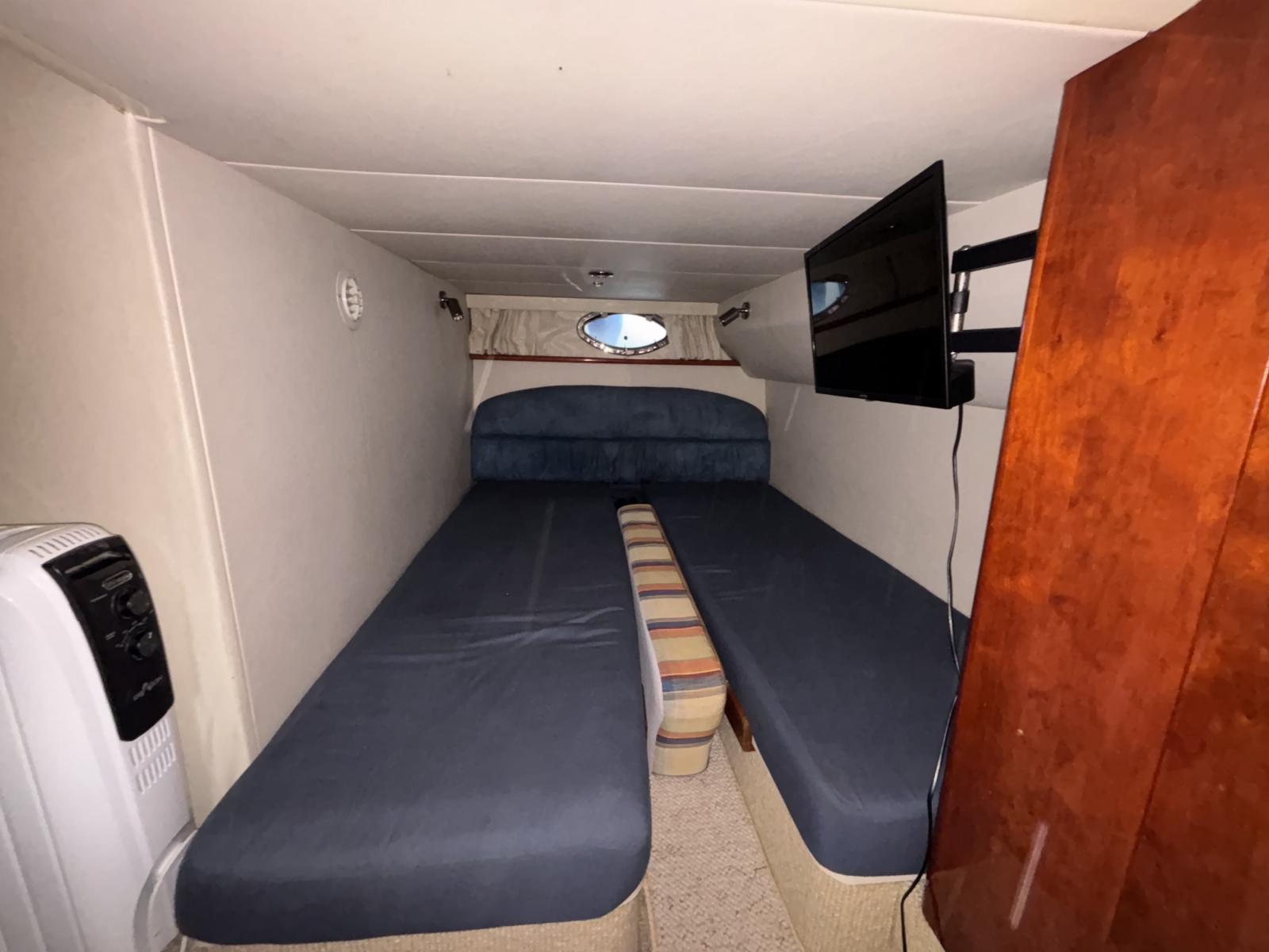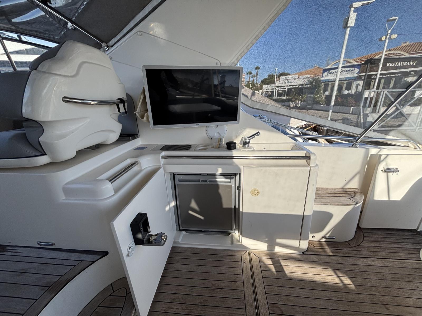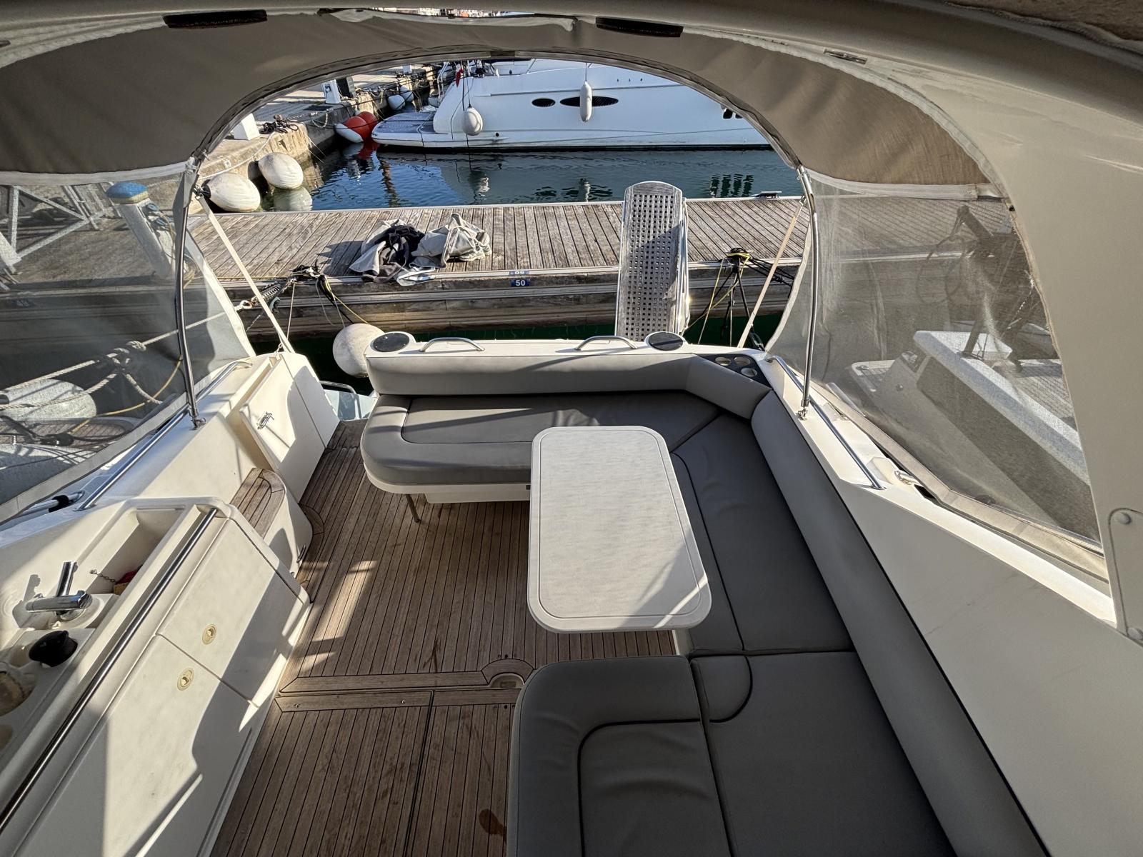 Entretiens récents : hydro-gommage 2022, révision moteurs complète 07/2024, antifouling premium + anodes 07/2024, lustrage coque 07/2024, hélices neuves, ballon d’eau chaude, pompes douche et cales, clim révisée, bâches neuves. En 03/2025 : Pro-Speed hélices, filtres moteurs et batterie service neufs. Réservoirs carburant pleins. Unité saine, suivie, prête à partir.