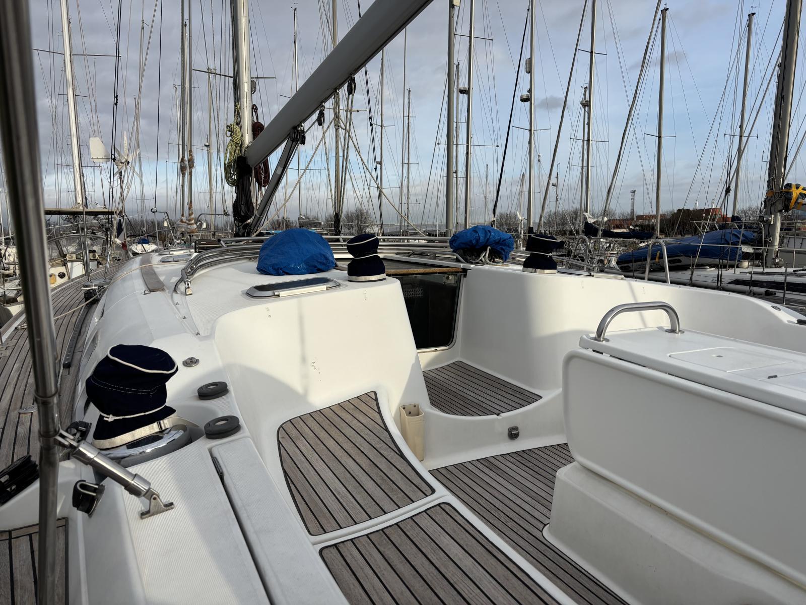 Le cockpit, spacieux et sécurisé, assure une circulation fluide et une navigation confortable, aussi bien en équipage réduit qu’en famille. Le plan de pont est ergonomique et parfaitement adapté à la croisière. Le bateau est équipé d’un jeu de voiles complet comprenant une grand-voile full batten, un génois, avec une soute à voiles dédiée. L’électronique complète permet de naviguer en toute sérénité et en toute sécurité.
