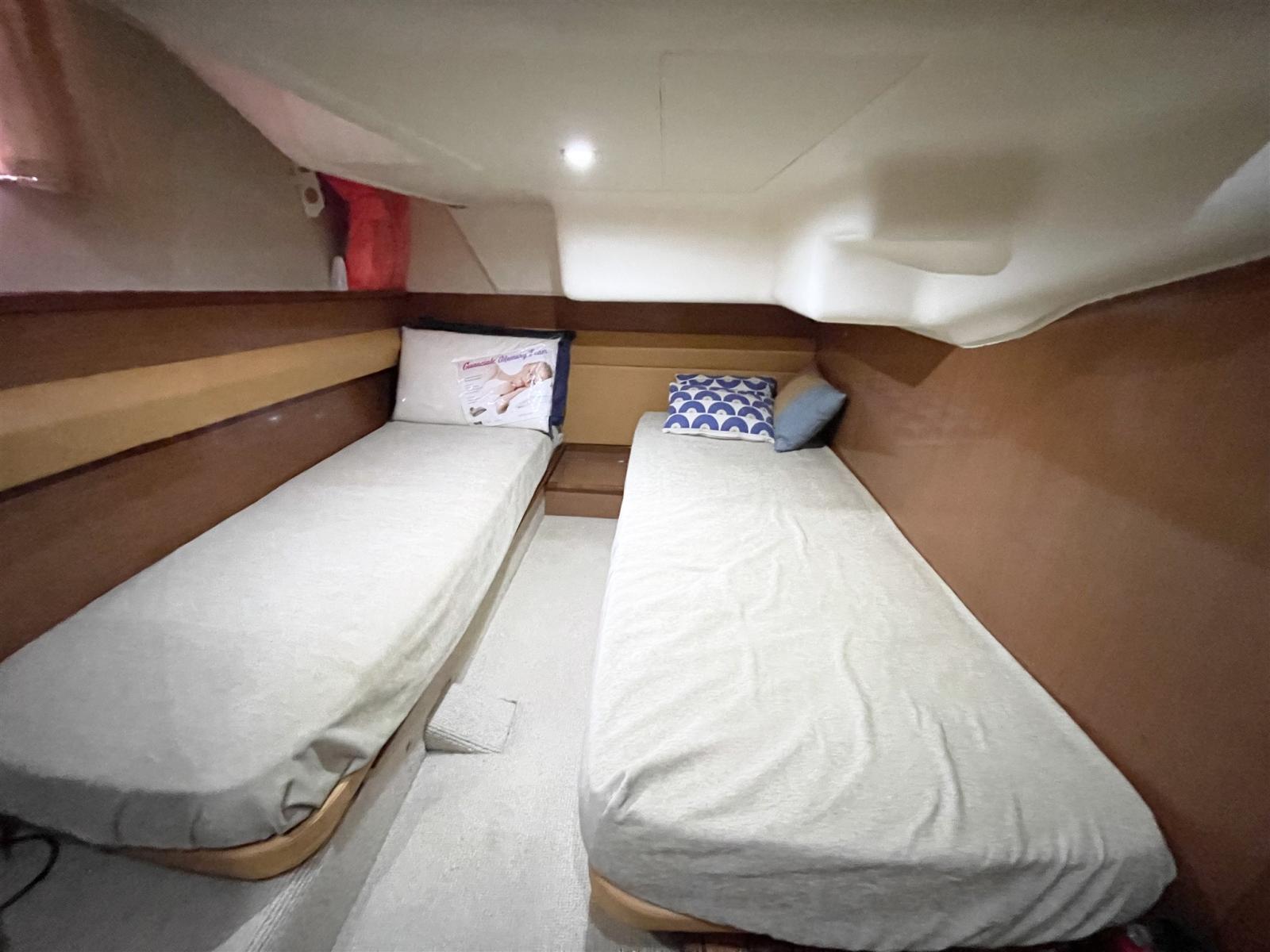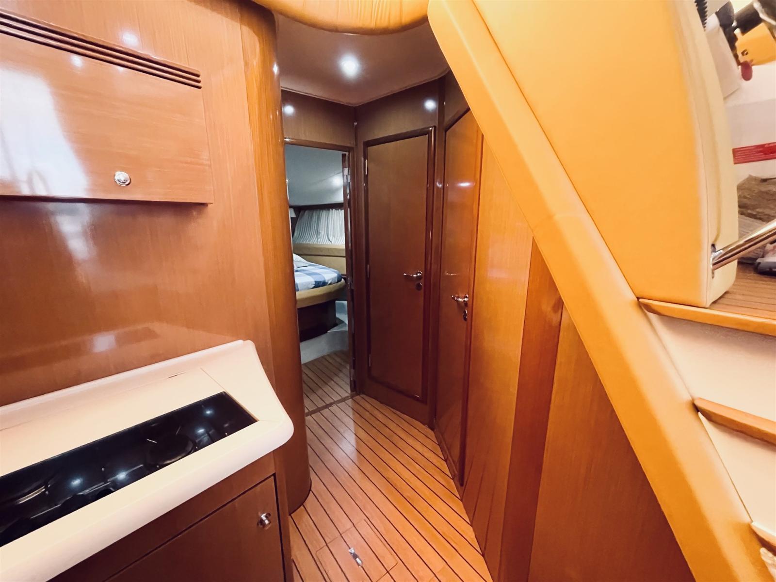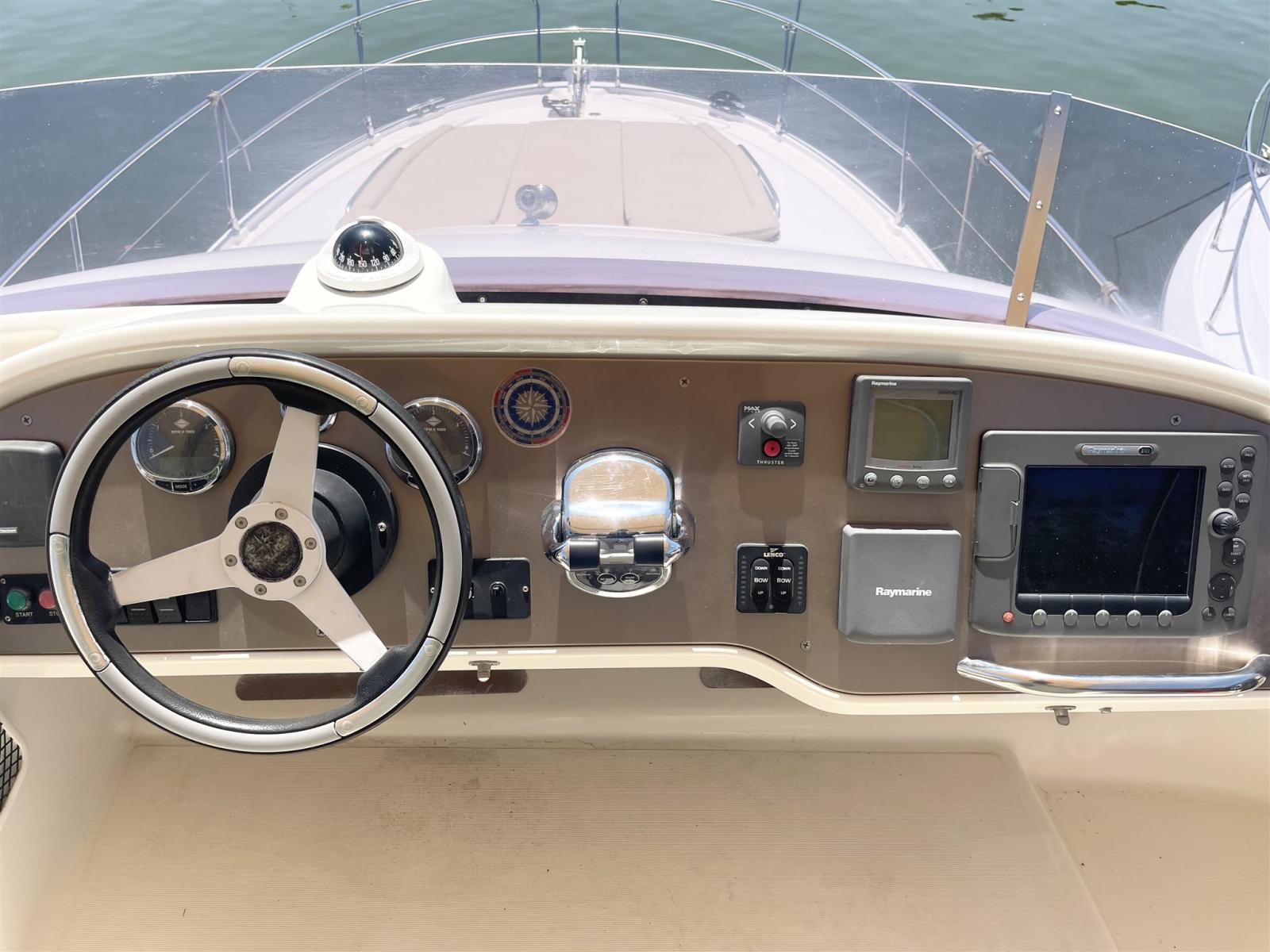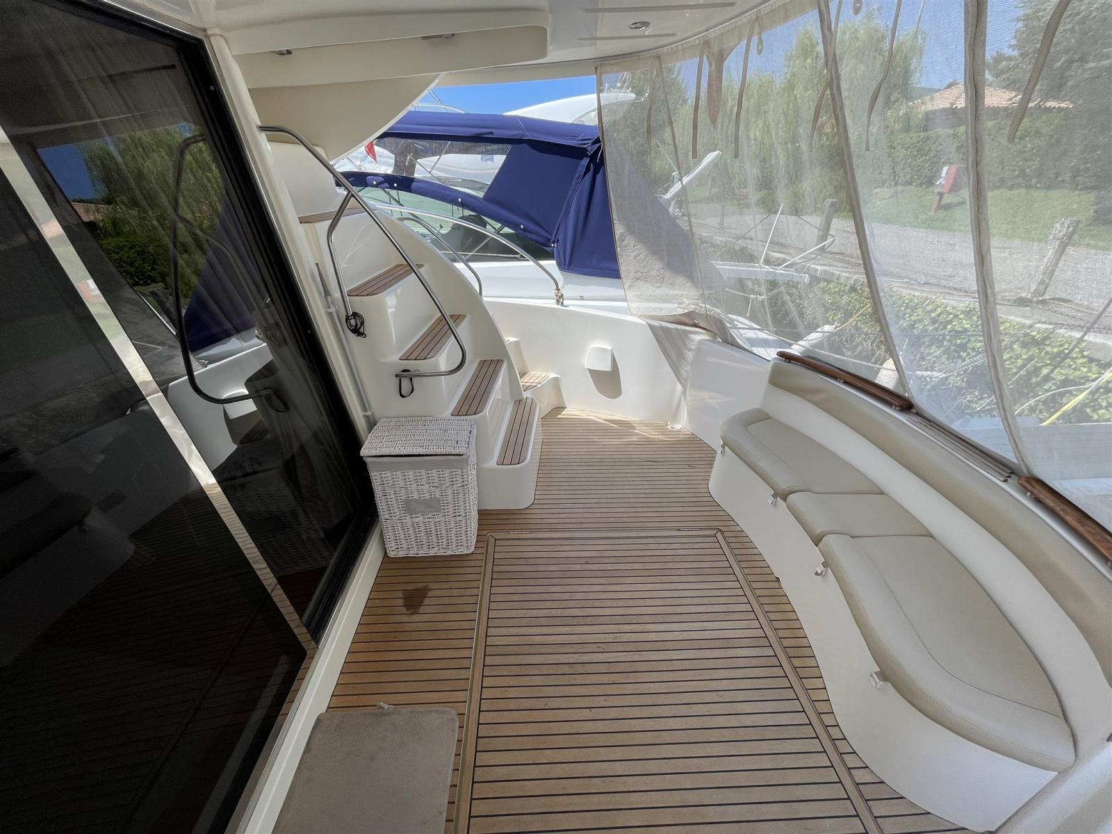 Alarme gaz, Alarme moteur, Alarme de pompe de cale, Flaps hydrauliques, Spots sous-marins, Passerelle, Pompe de cale automatique, Pompe de cale manuelle, Pont en teck, Porte latérale, Cockpit en teck, Prise de quai, Connexion eau sous pression à quai, Guindeau électrique.