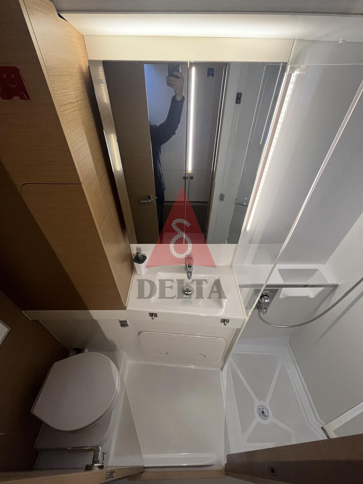 Alarme moteur, Alarme de pompe de cale, Ancre (Rocna da 25 kg. con chain glower - 50 mt. catena da 12 mm), 2 Aspiration des Eaux Usées depuis le Pont, Eau sous pression, 6 Batteries (2 Motori AGM Optima Red - 4 Servizi AGM Optima Yellow), 2 Chargeur de batterie (Victron BlueSmart), Douche de cockpit (calda/fredda), Double barre à roue (Ruote Timone Carbonautica), Bossoirs pour annexe (portata 150 Kg./cad), Éclairage de courtoisie (led in pozzetto e scalini), Moniteur de batterie, Moteur hors-bord pour annexe (Yamaha 15CV del 2023 con cover in sunbrella), 4 Panneau solaire (Uflex 4x120 Watt con interfaccia smart), Passerelle (pieghevole Carbonautica), 2 Plateforme arrière, Pompe de Vidange du Réservoir d’Eaux Usées, Pompe de cale automatique, 2 Pompe de cale manuelle, Cockpit en teck, Prise de quai, Connexion eau sous pression à quai, Guindeau électrique (Quick 1000W con telecomando wireless), Gréement monotoron, Echelle de bain, table de cockpit, Annexe (Tender Highfield CL290 con cover in sunbrella), Corne, 2 Winch électrique (Herken 40 mm), Windex.