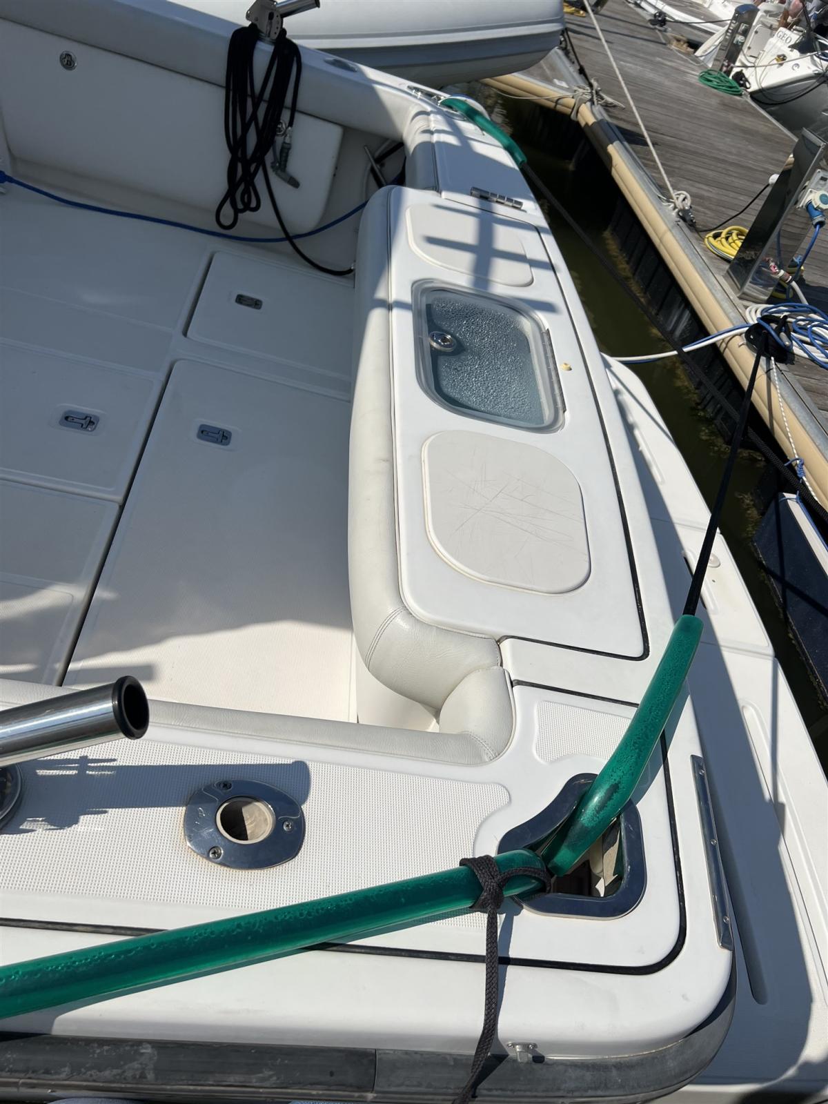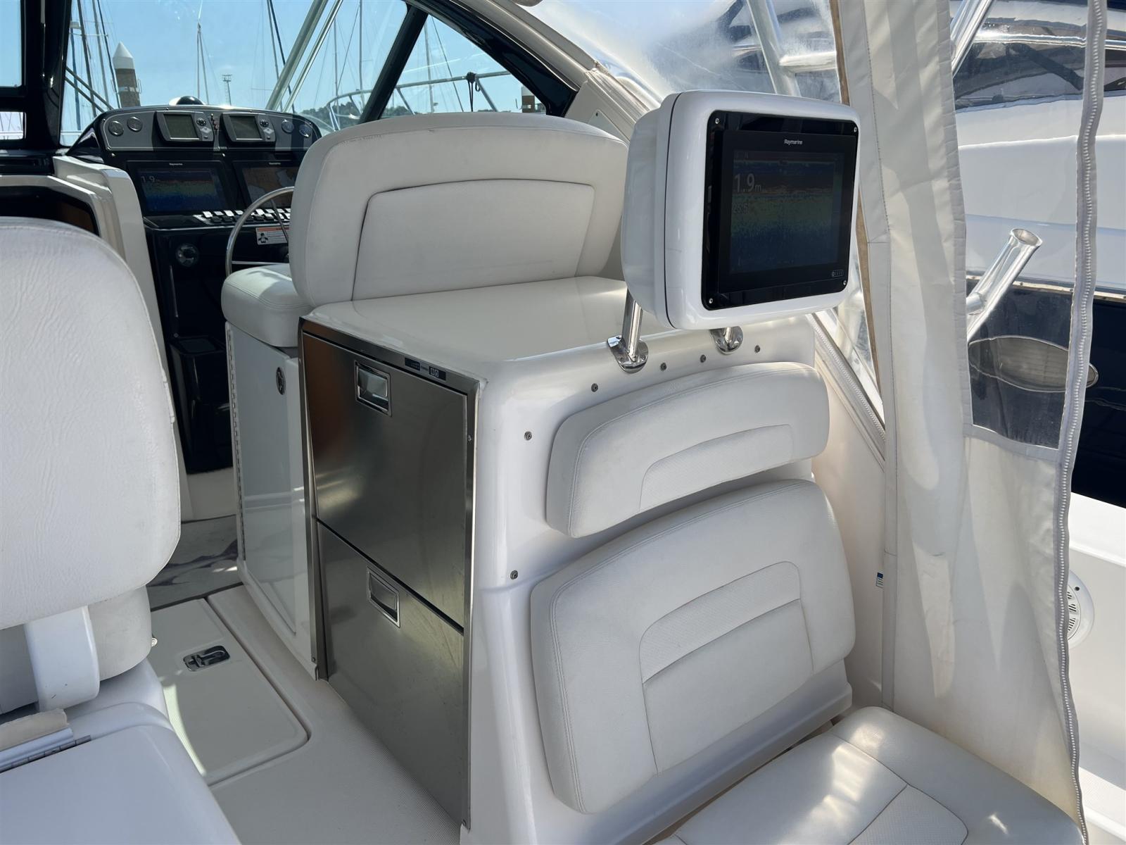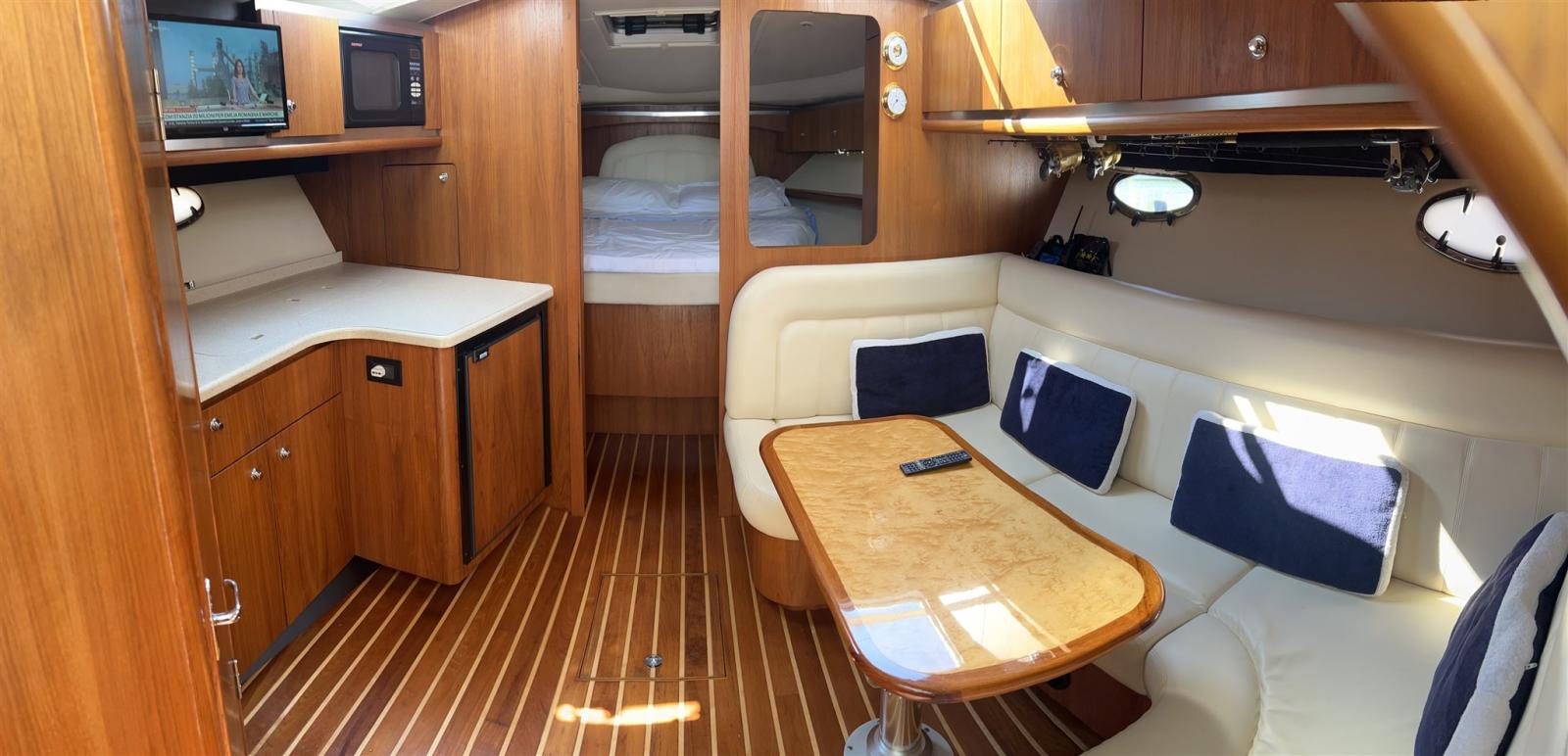 Alarme moteur, Eau sous pression, Douche de cockpit, Flaps hydrauliques, Hard top, Extincteur(s) fixe(s), Indicateurs de flaps, Lavabo dans le cockpit, Éclairage de courtoisie, Plateforme arrière, Pompe de cale automatique, Pompe de cale manuelle, Porte latérale, Prise de quai, Connexion eau sous pression à quai, Guindeau électrique, Echelle de bain, table de cockpit, Table pliante de salon, Corne.