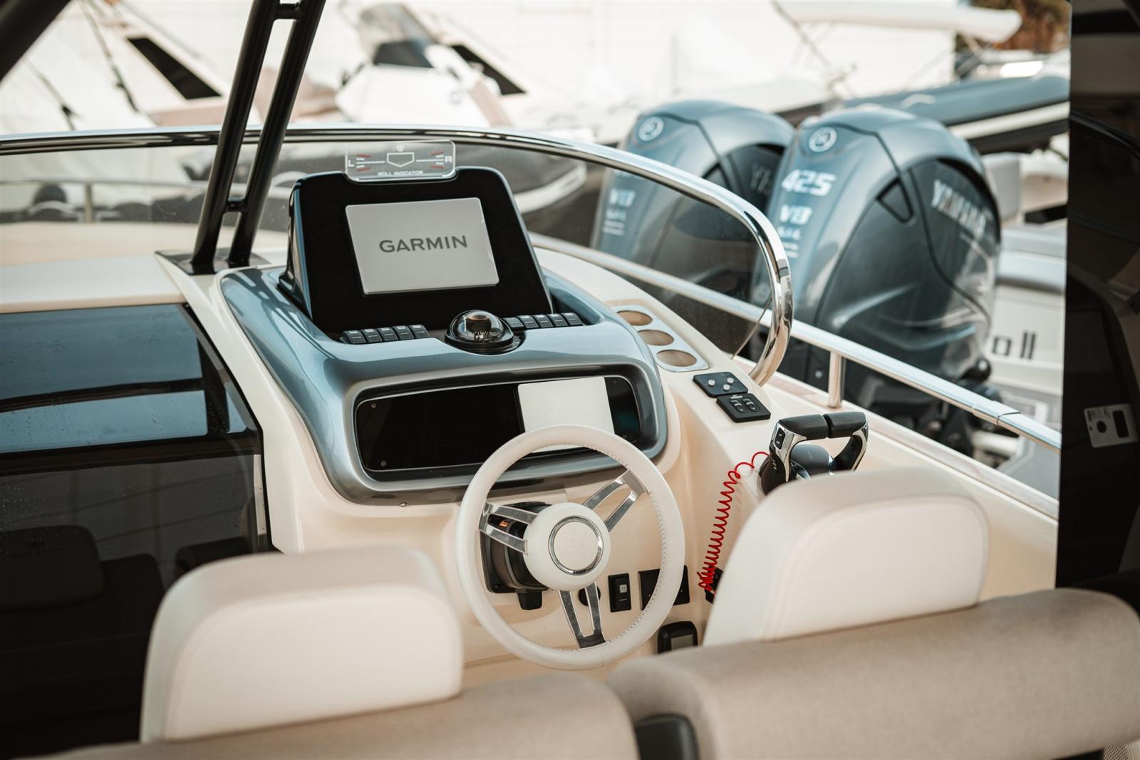 Eau sous pression, Couleur spéciale, Hard top, Lavabo dans le cockpit, Spots sous-marins, Prise de quai, Guindeau électrique, Echelle de bain, table de cockpit, T-Top.