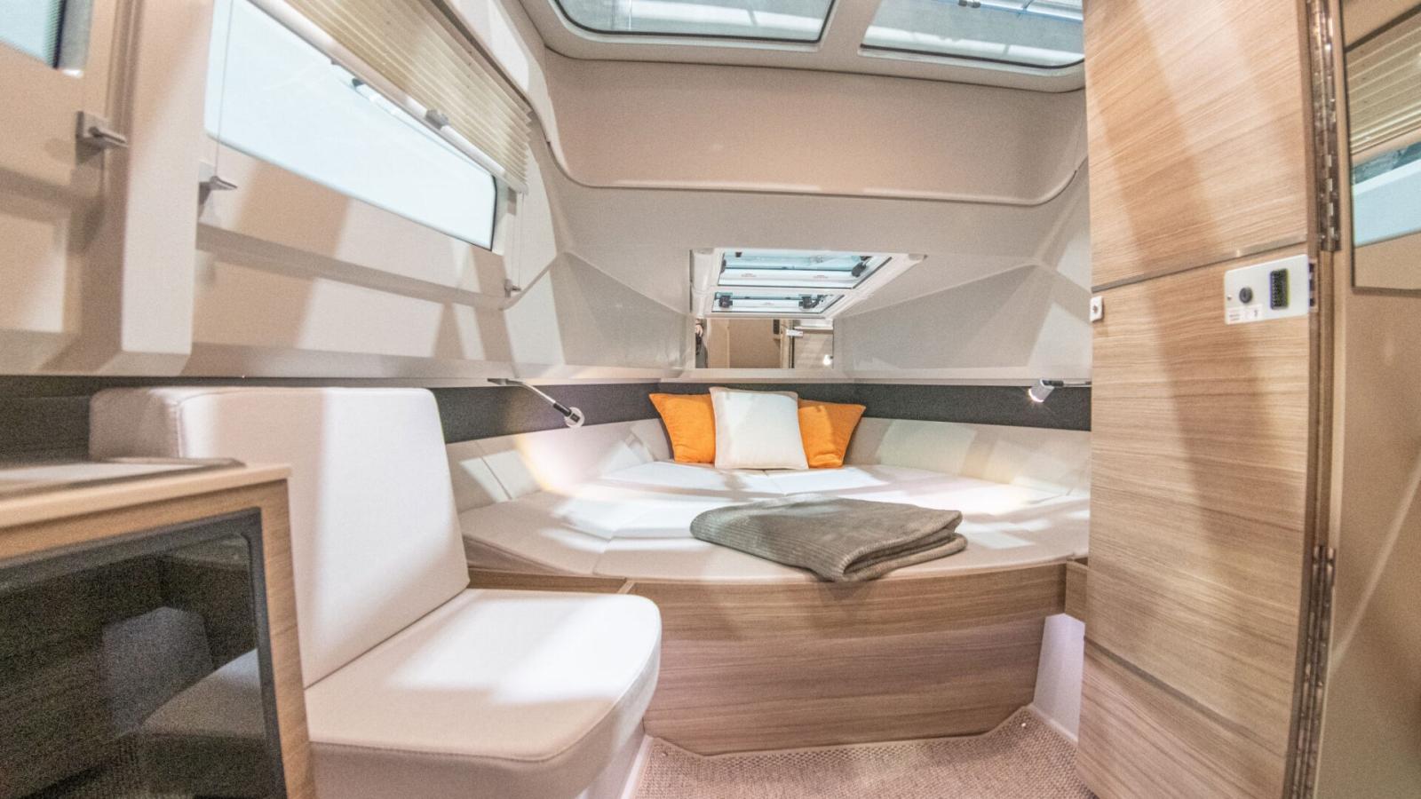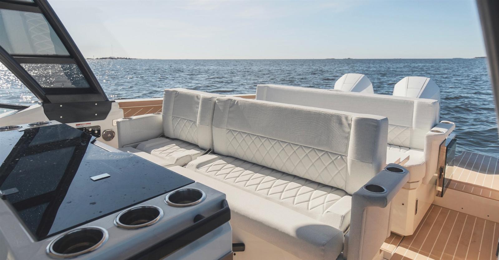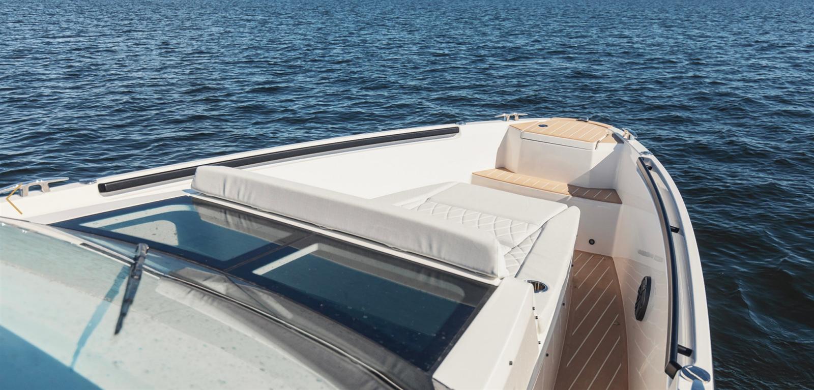 Le Saxdor 320 GTO est l’équilibre parfait entre le design italien, la fonctionnalité américaine, la qualité allemande et un prix à la française. Équipé d’un T-top et de passerelles latérales, il offre un design épuré, des performances performantes avec des moteurs hors-bord et une coque efficace et économique en navigation. Les trois versions (GTO, GTC et GT) partagent ces caractéristiques distinctives. La configuration avec un seul moteur V8 Mercury de 300 ch lui permet d’atteindre une vitesse maximale de 40 nœuds, avec une croisière confortable autour de 30 nœuds. Avec deux moteurs de 300 ch, en revanche, le Saxdor 320 dépasse facilement les 50 nœuds, en maintenant une vitesse optimale entre 20 et 40 nœuds. Le solarium prolongé à l’avant et la dînette qui se transforme en espace de détente offrent amplement d’espace pour s’allonger et profiter du soleil. De plus, d’un simple geste, le dossier rabattable transforme les sièges avant en banquettes confortables tournées vers l’avant pour accueillir les invités. Contactez-nous pour plus de détails.
