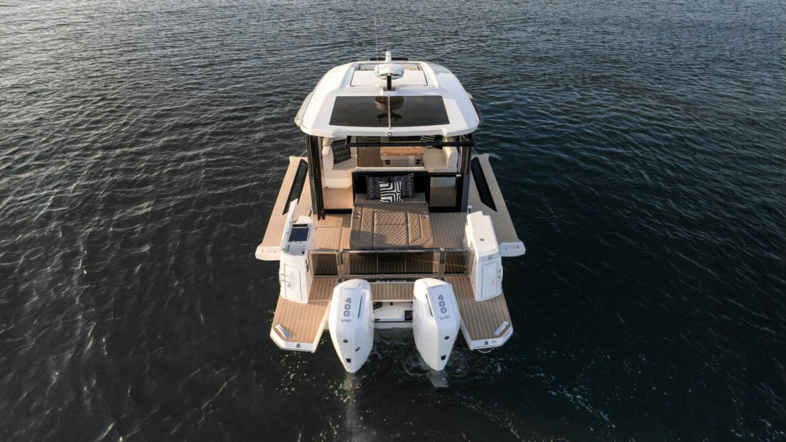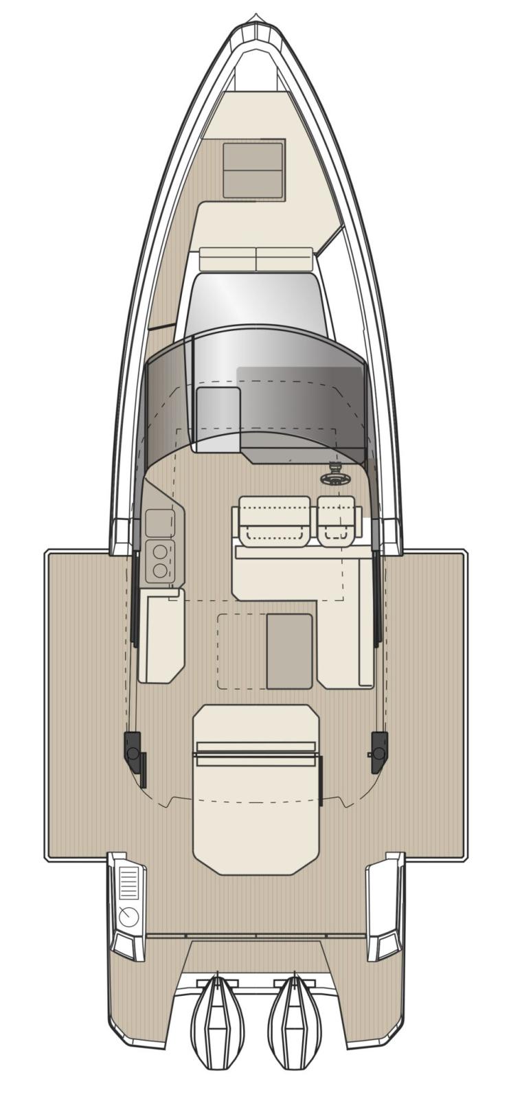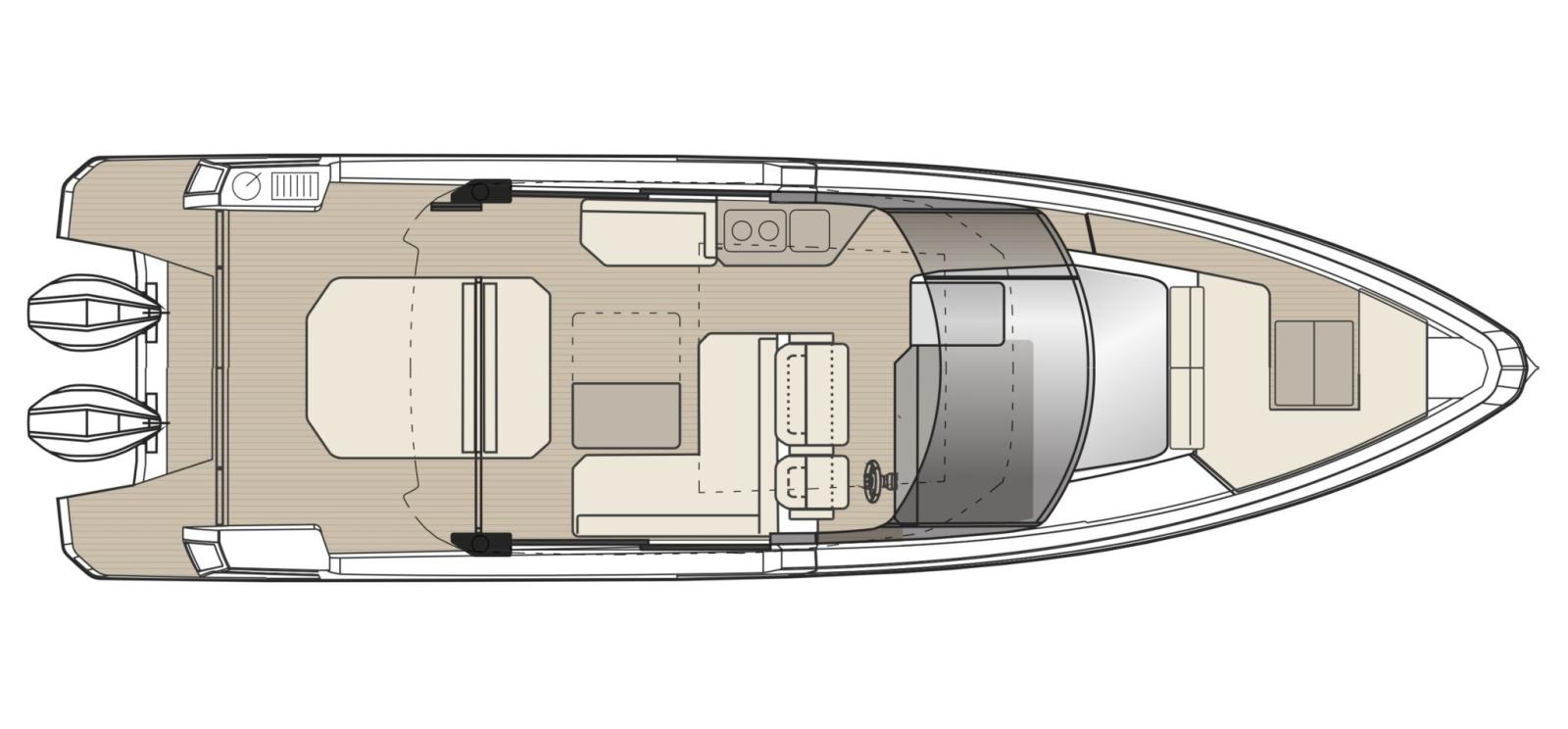 Le Saxdor 400 GTC est conçu pour les deux moteurs hors-bord et utilise une architecture navale exclusive, garantissant une expérience de navigation mémorable. Le pont principal présente un design innovant avec une timonerie pleine largeur, optimisant l’espace intérieur. Par rapport à la GTO, la GTC ajoute une touche de luxe grâce aux grandes surfaces vitrées isolées, qui créent un environnement lumineux et accueillant, à l’abri des intempéries. L’aménagement permet une connexion directe aux terrasses latérales, pour une expérience de détente similaire à une île privée. Sous le pont, deux escaliers mènent aux cabines doubles - à l’avant et au milieu du navire - qui partagent une salle de bain ; Un troisième lit pour les enfants est également disponible en option. Chaque détail est conçu avec élégance et fonctionnalité. Contactez-nous pour plus d’informations.