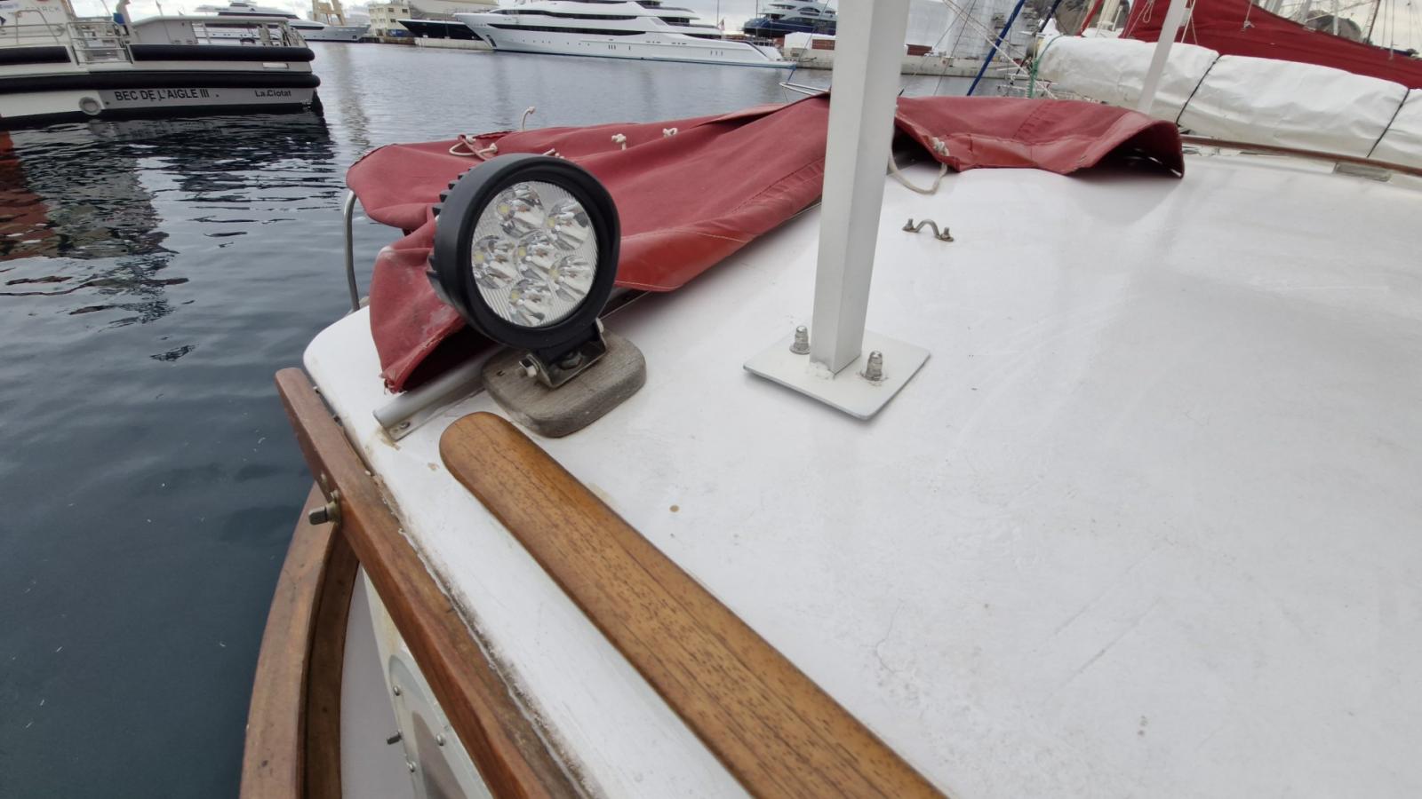 VHF NAVICOM RT750 avec ASN, GPS GARMIN GPSMAP 421, Sondeur APELCO 460, Pilote automatique AS-100, Chargeur DOLPHIN (2024), Régulateur VICTRON, Panneaux solaires (2025).