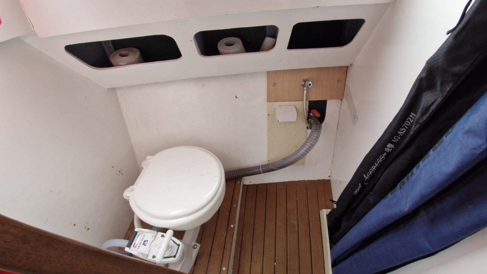 Cockpit en FLEXITECK, Carré transformable, Cabine avant, 2 couchettes doubles (4 couchages), Cuisine en long, WC marin (2025), Réfrigérateur (2024), Coussins de cockpit (2024–2025), Rideaux intérieurs (2025), Table de cockpit, Plateforme de bain.
