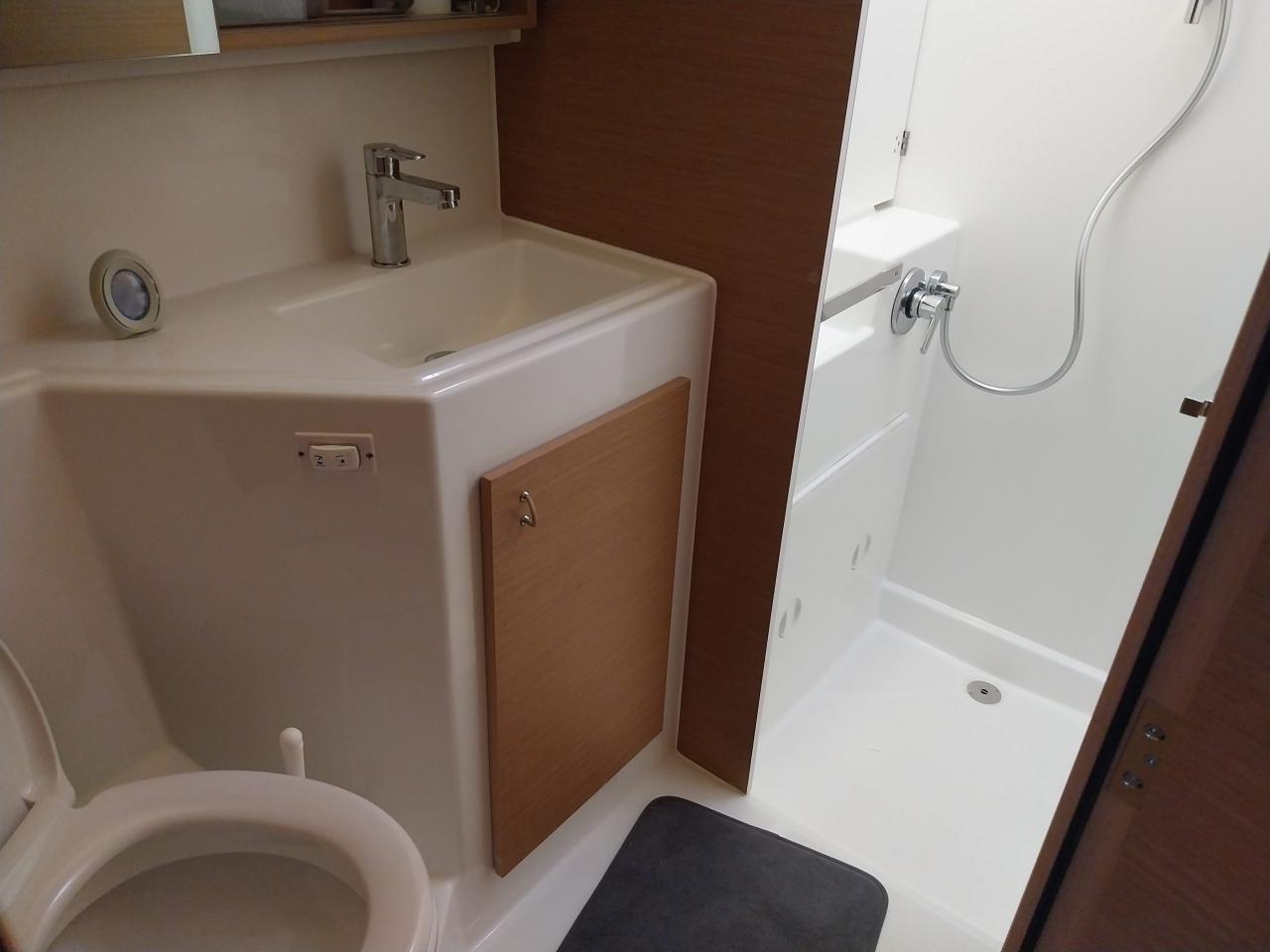 Deux salle d’eau avec lavabo WC électrique avec holding tank 80 L et douche séparée